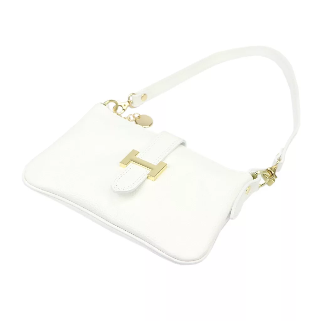 Elegáns, modern és nőies megjelenés. A karcsú mini válltáska fazon, az átfogó pánt díszítése és a fehér árnyalat friss, letisztult karaktert ad a táskának, amely tökéletes választás nappali és esti szettekhez egyaránt.