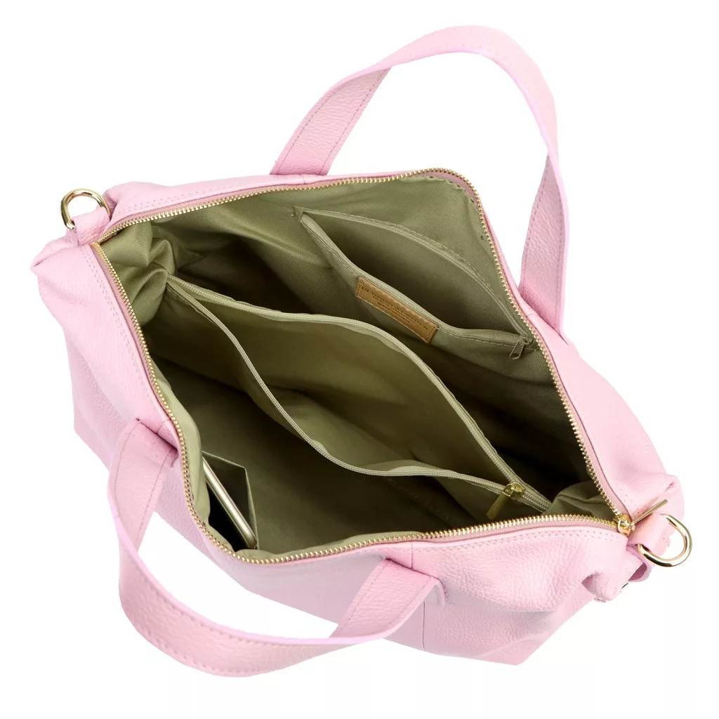 Elegáns, praktikus és nőies megjelenés. A tágas forma, a letisztult vonalvezetés és a pasztell rózsaszín árnyalat finoman romantikus karaktert ad a táskának, amely tökéletes választás mindennapi használatra vagy rövidebb utazásokhoz.