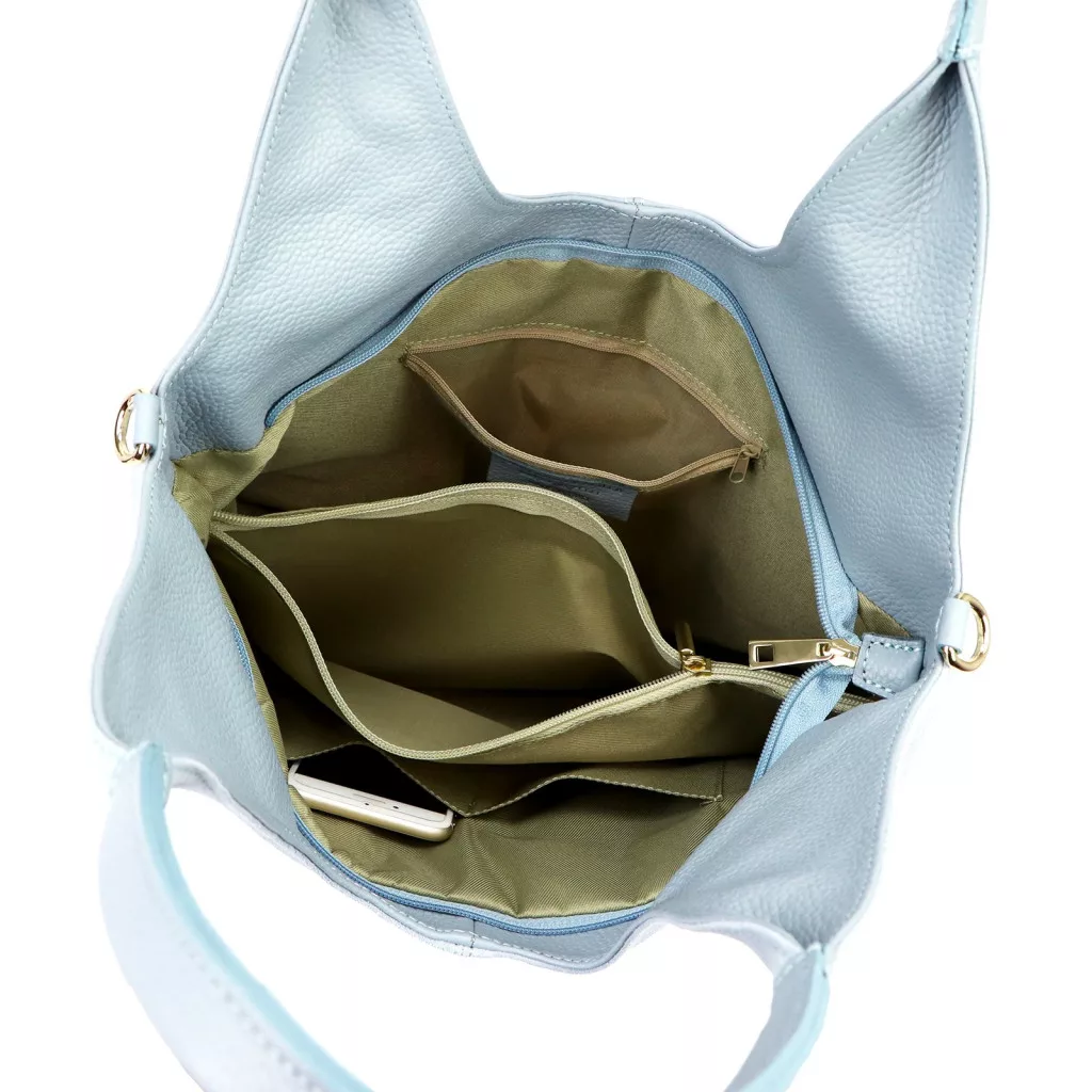 A táska egyrekeszes kialakítású, amely tartós béléssel készült. A belső térben egy cipzáras zseb található az apróbb értéktárgyak számára, egy nyitott mobiltartó zseb, valamint egy nagy cipzáras elválasztó zseb, amely segíti a tárgyak rendszerezését. A fő rekesz cipzárral záródik, így a tartalom biztonságosan tárolható. A táska hátoldalán egy további cipzáras zseb található a gyakran használt tárgyak számára.