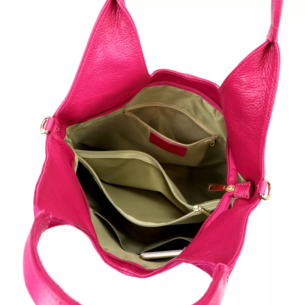 A Luka 26-013 magenta női bőr kézitáska klasszikus, tágas kialakításával ideális választás a mindennapi használatra. A praktikus shopper fazon elegáns és kényelmes viseletet biztosít, miközben bőséges helyet kínál a mindennapi szükséges tárgyak számára. Letisztult megjelenése és puha bőrszerkezete modern, mégis időtálló karaktert kölcsönöz a táskának.