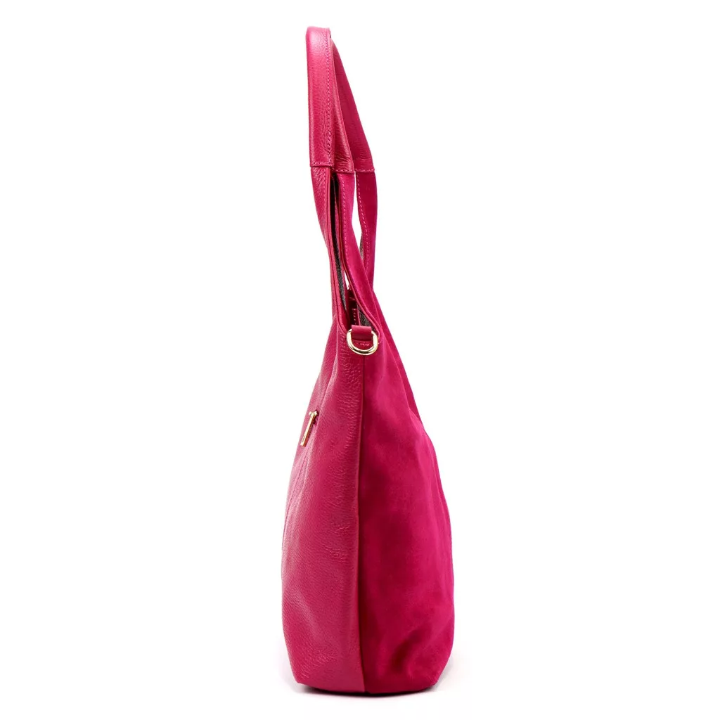 Klasszikus, városi és karakteres megjelenés. A tágas shopper fazon, a puha velúr bőr és a magenta árnyalat modern, feltűnő karaktert ad a táskának, amely tökéletes választás a stílusos mindennapokhoz.