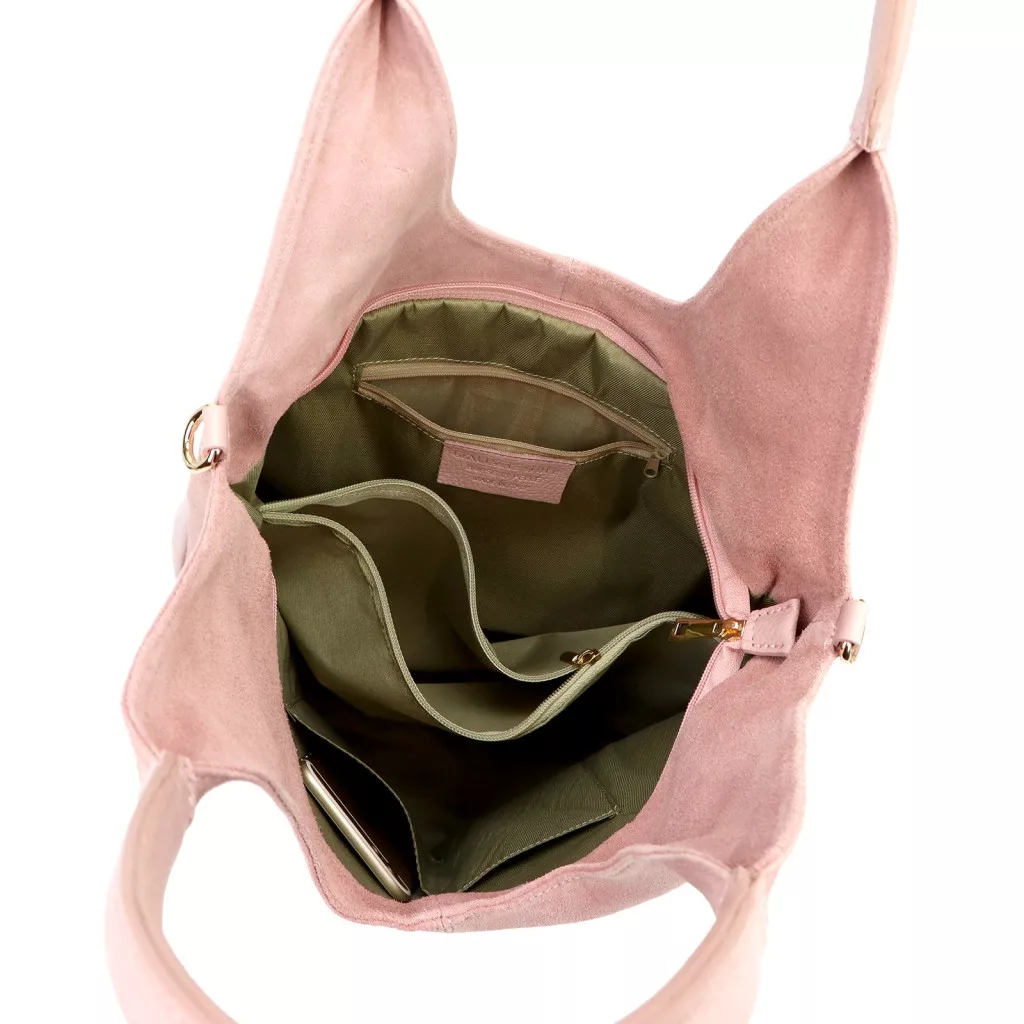 Klasszikus, városi és nőies megjelenés. A tágas shopper fazon, a puha velúr bőr és a púder árnyalat elegáns, finoman romantikus karaktert ad a táskának, amely tökéletes választás a stílusos mindennapokhoz.