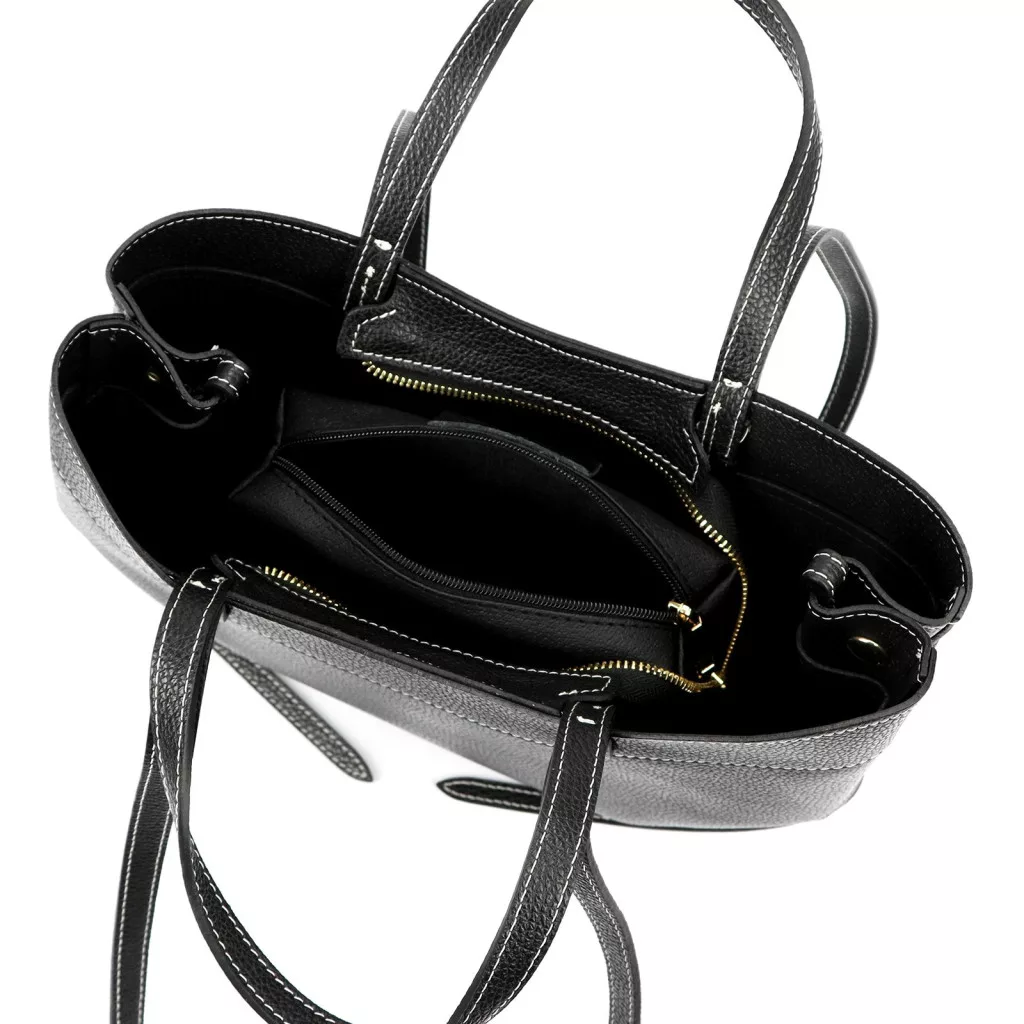 Modern, letisztult és nőies megjelenés. A strukturált, mégis lágy vonalvezetésű fazon, a finoman szemcsézett DOLLARO bőr és a fekete árnyalat időtálló eleganciát ad a táskának, amely tökéletes választás a stílusos mindennapokhoz.