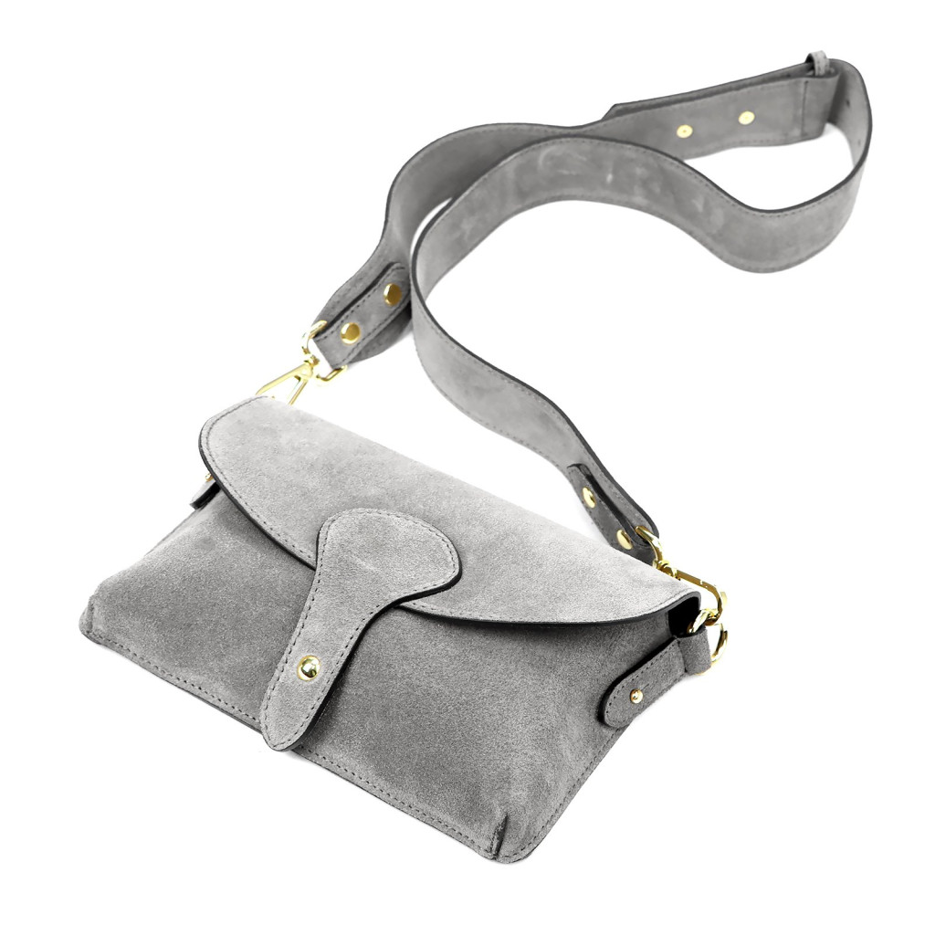 Luka 24-071 szürke női velúr bőr oldaltáska 22.5 x 14.5 x 4.5 cm