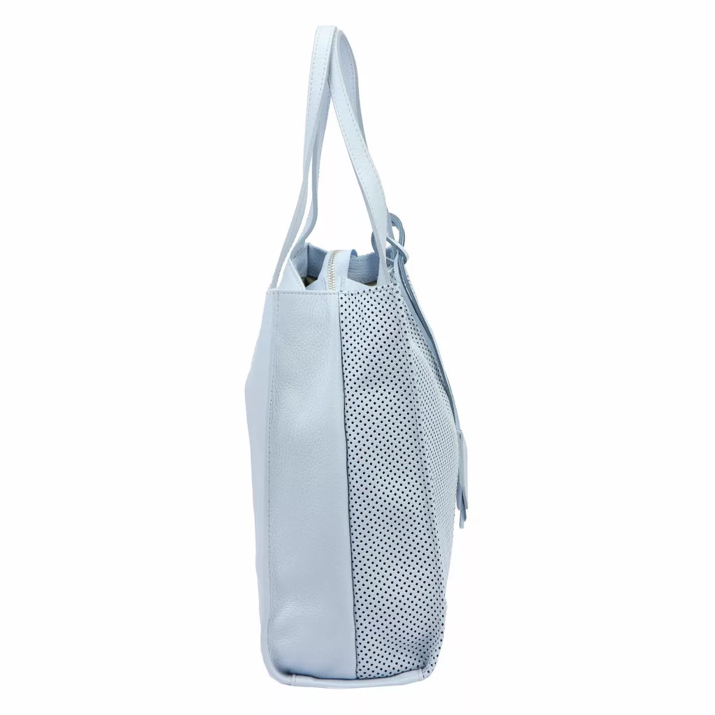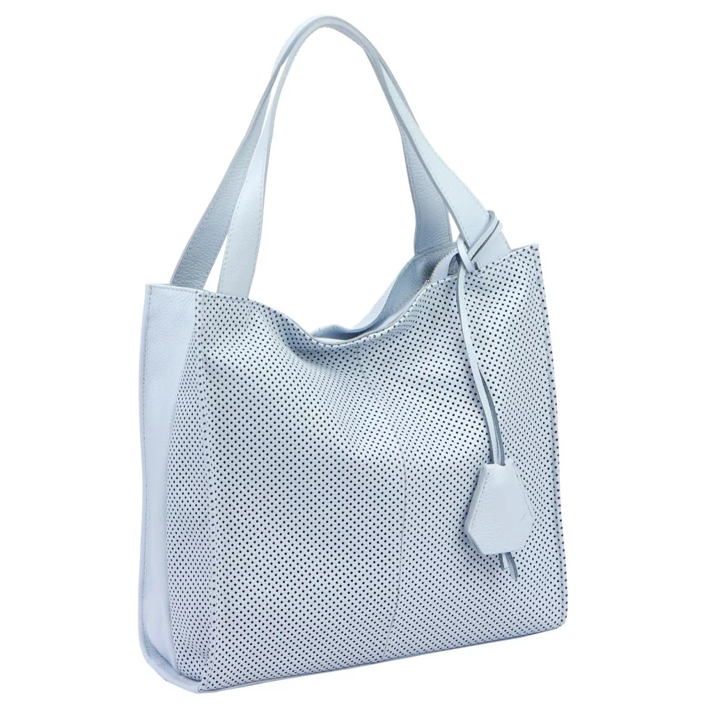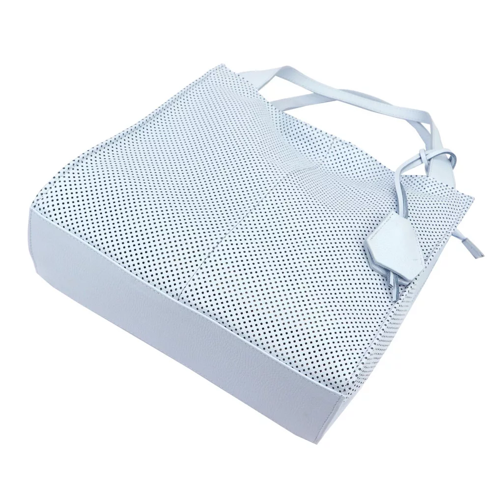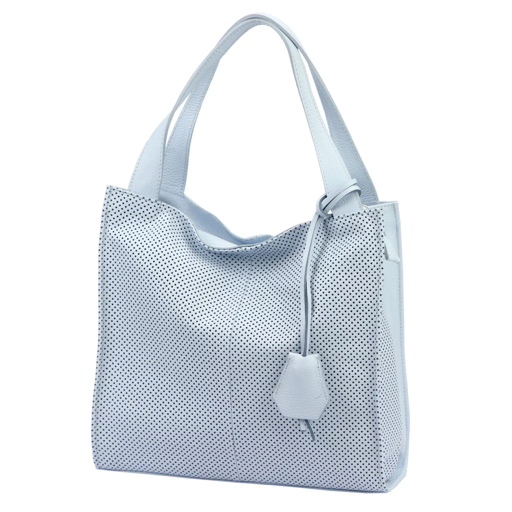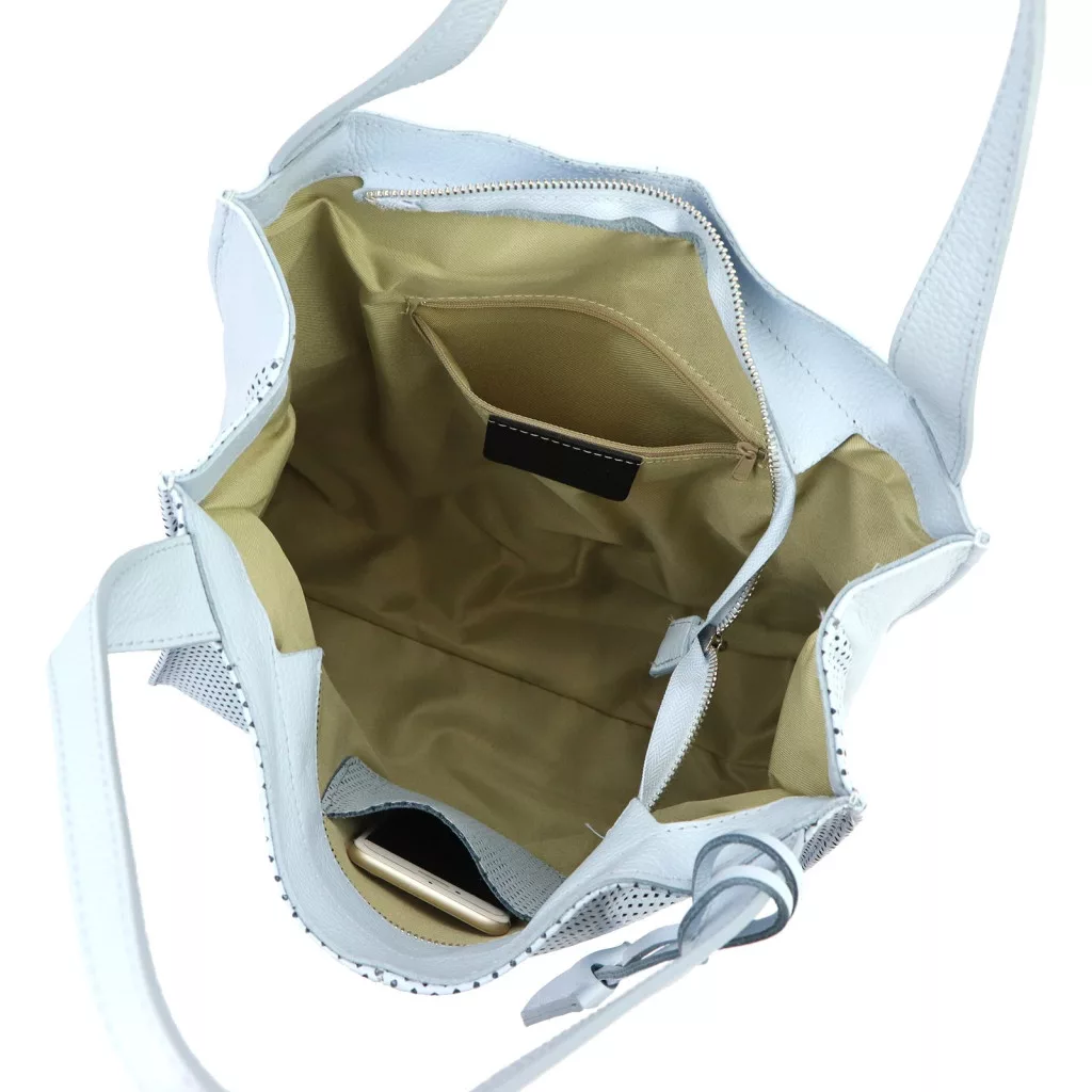 Modern, minimalista és nőies megjelenés. A perforált felület, a lágy struktúra és a babakék árnyalat friss, elegáns karaktert ad a táskának, amely tökéletes választás a stílusos mindennapokhoz.