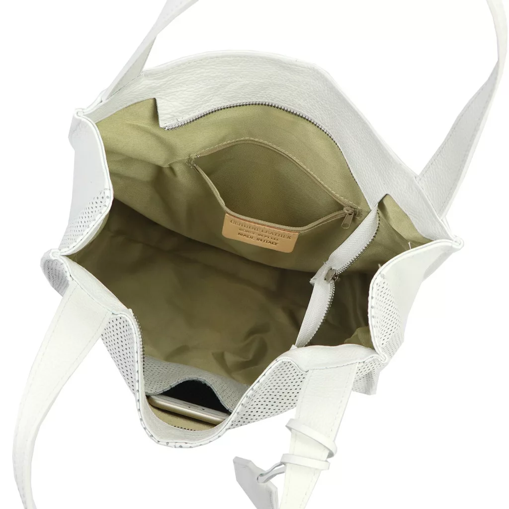 Modern, elegáns és letisztult megjelenés. A perforált felület, a lágy struktúra és a fehér árnyalat friss, kifinomult karaktert ad a táskának, amely tökéletes választás a stílusos mindennapokhoz.