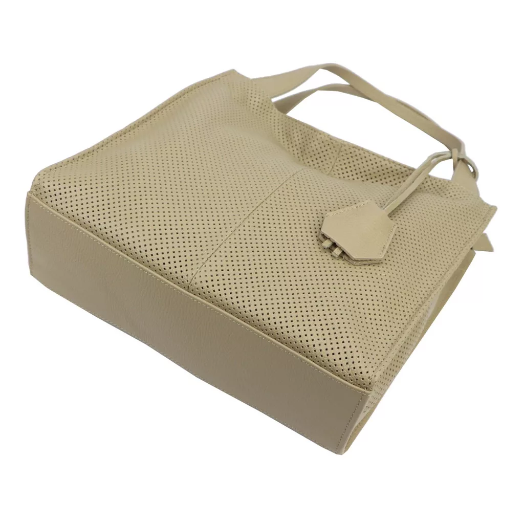 Formáját tekintve enyhén lágy tartású, természetesen ívelt felső vonallal rendelkezik, amely elegáns, mégis laza hatást kelt. A hosszabb kézifogók lehetővé teszik a kényelmes vállon vagy kézben történő hordást. Oldalán dekoratív bőr függő dísz található, amely finoman kiemeli a táska stílusát.