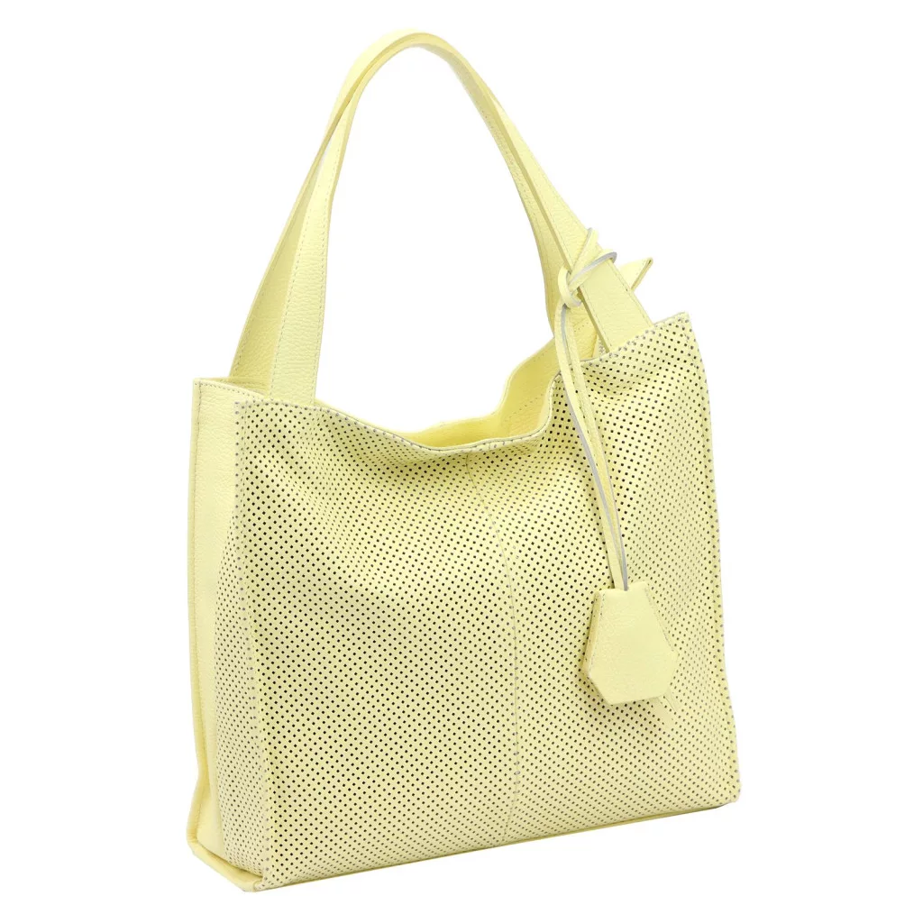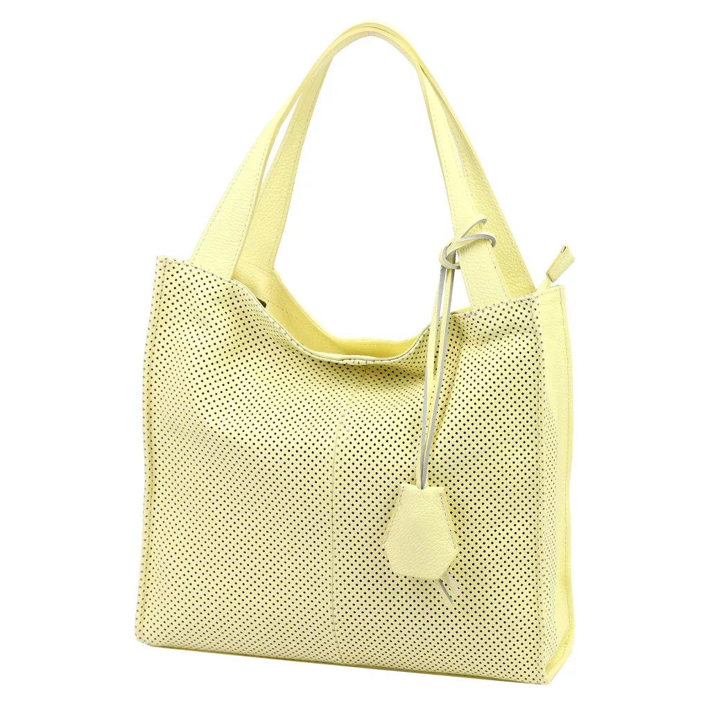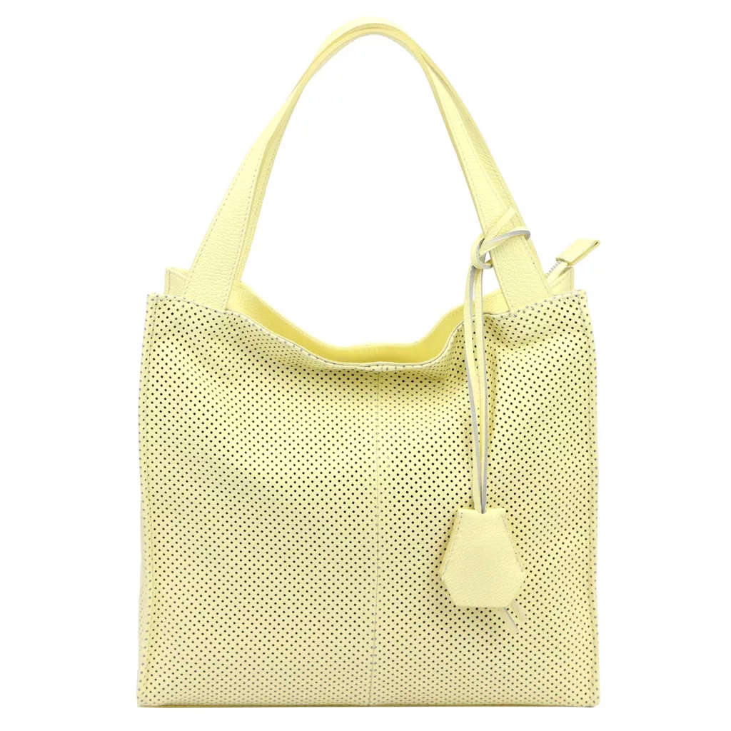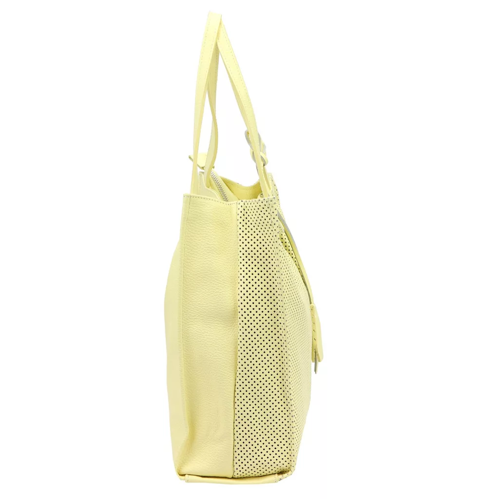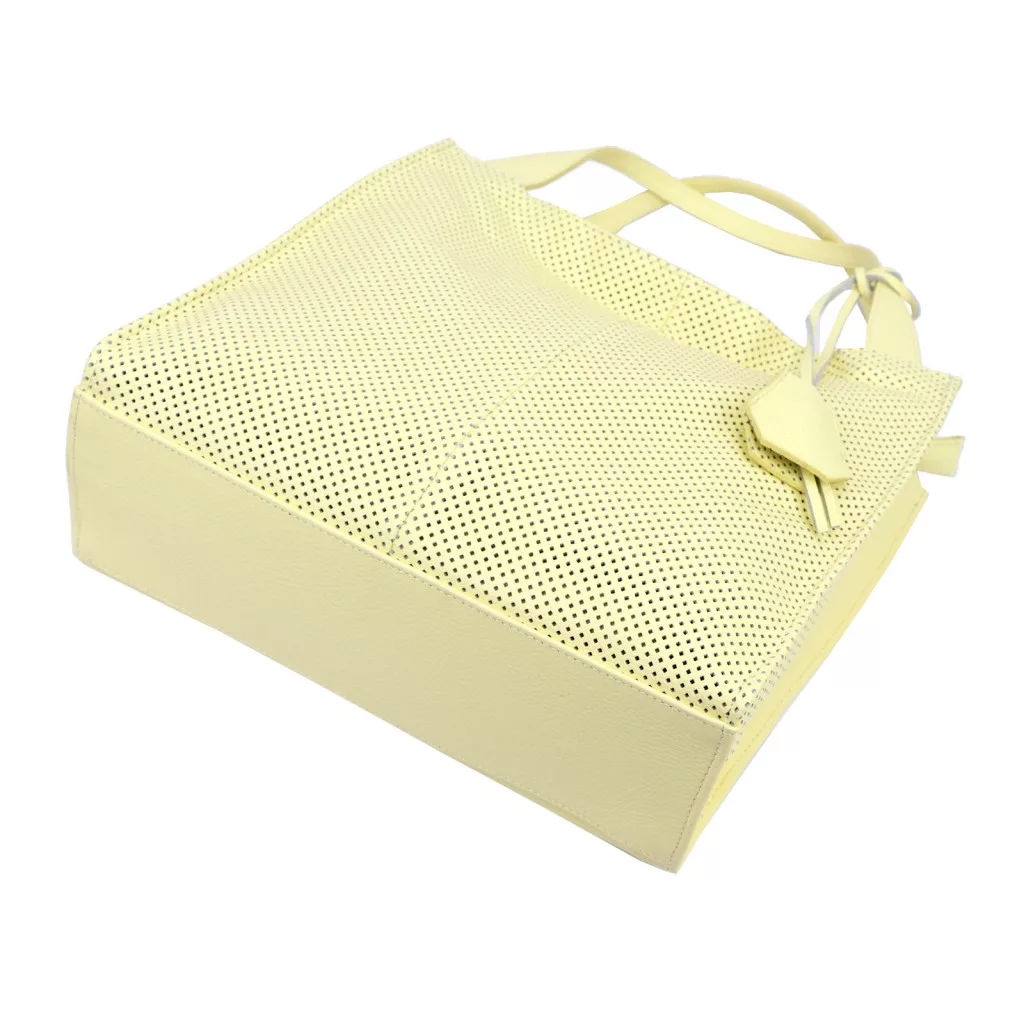 Modern, friss és nőies megjelenés. A perforált felület, a lágy struktúra és a halvány sárga árnyalat könnyed, üde karaktert ad a táskának, amely tökéletes választás a stílusos mindennapokhoz.