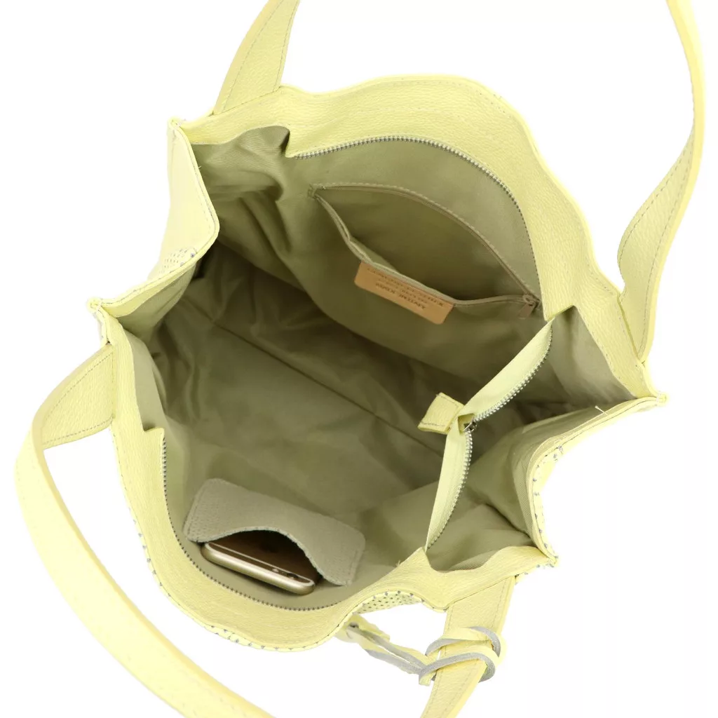 A táska prémium minőségű marhabőrből készült, amely tartós, ugyanakkor rugalmas és kellemes tapintású. A halvány sárga szín a feng shui szerint az örömöt, az optimizmust és a pozitív energiát jelképezi. Lágy, pasztelles árnyalata finom, derűs karaktert ad a táskának, amely diszkréten, mégis stílusosan emeli ki megjelenését.