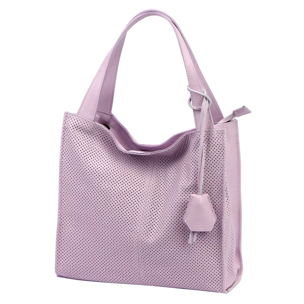 Modern, nőies és kifinomult megjelenés. A perforált felület, a lágy struktúra és a levendula lila árnyalat elegáns, mégis friss karaktert ad a táskának, amely tökéletes választás a stílusos mindennapokhoz.