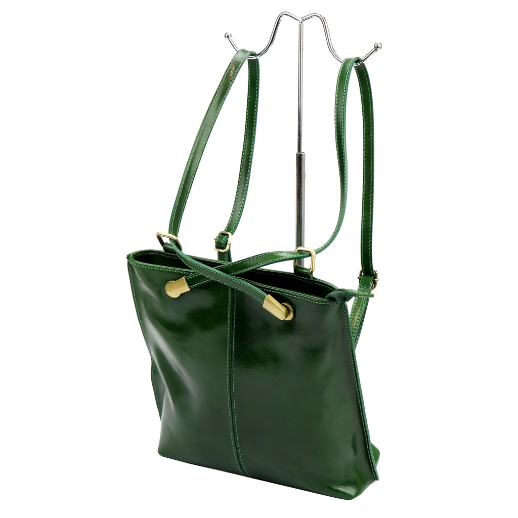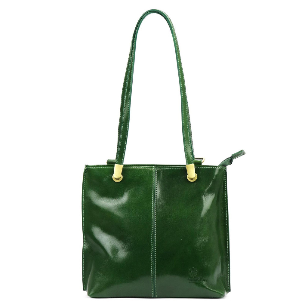 Florence 35 smaragzöld női bőr válltáska, hátizsákká alakítható 32 x 28 x 9 cm