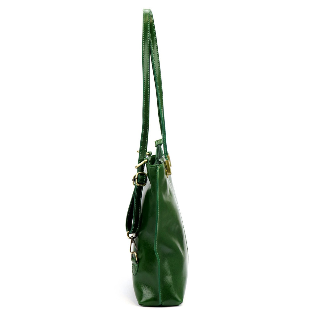 Elegáns, klasszikus és karakteres megjelenés. A selyemfényű bőr finom árnyalatai, a „tamponato” festési technika és a smaragdzöld szín különleges, mégis időtálló karaktert ad a táskának, amely tökéletes választás a stílusos mindennapokhoz