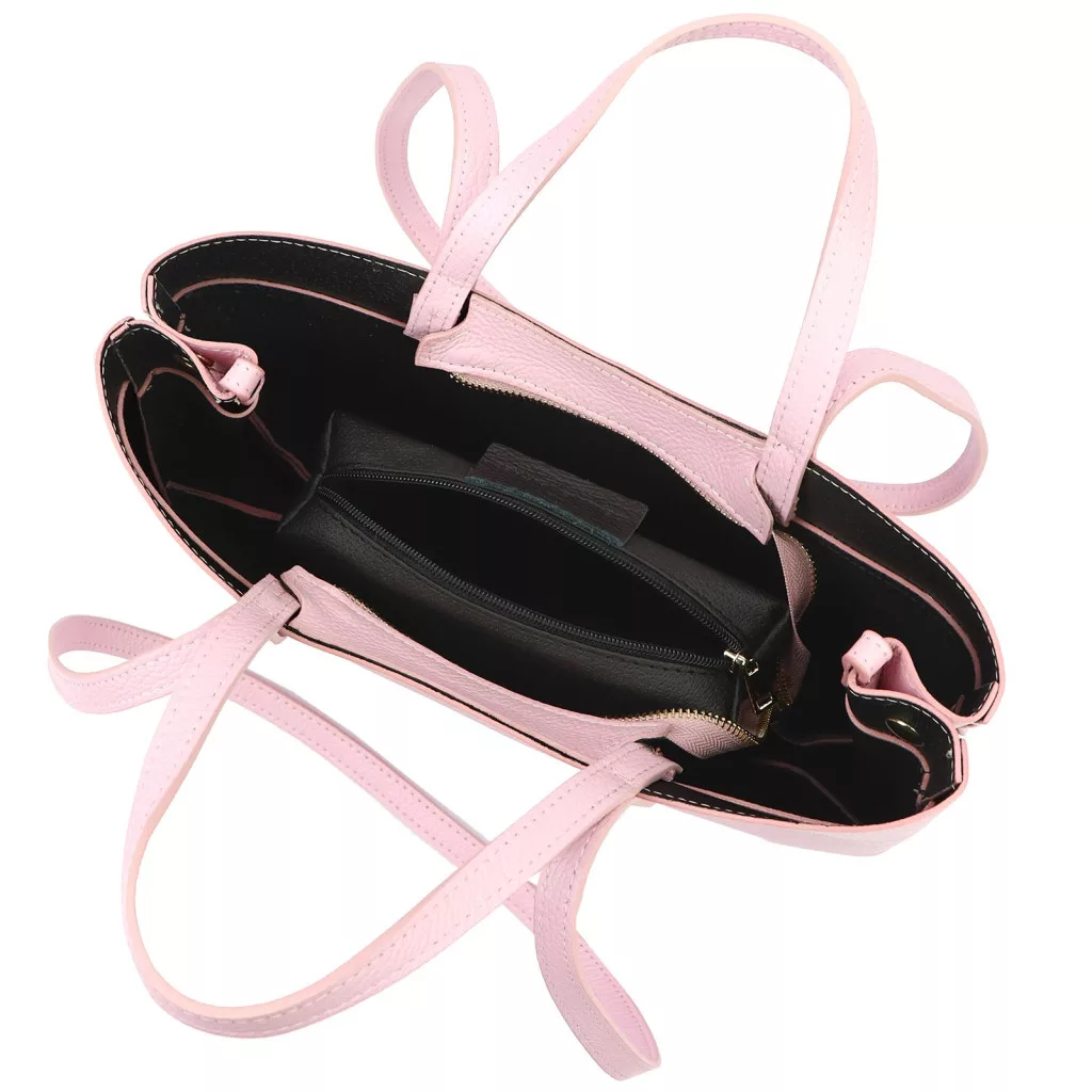 A táska prémium minőségű marhabőrből készült, DOLLARO típusú, finoman szemcsézett felülettel. Ez a bőrtípus tartós, ellenálló és elegáns textúrát ad a táskának. A pasztell rózsaszín szín a feng shui szerint a gyengédséget, a szeretetet és az érzelmi harmóniát jelképezi. Lágy, romantikus árnyalata nőies és kifinomult karaktert kölcsönöz a táskának.