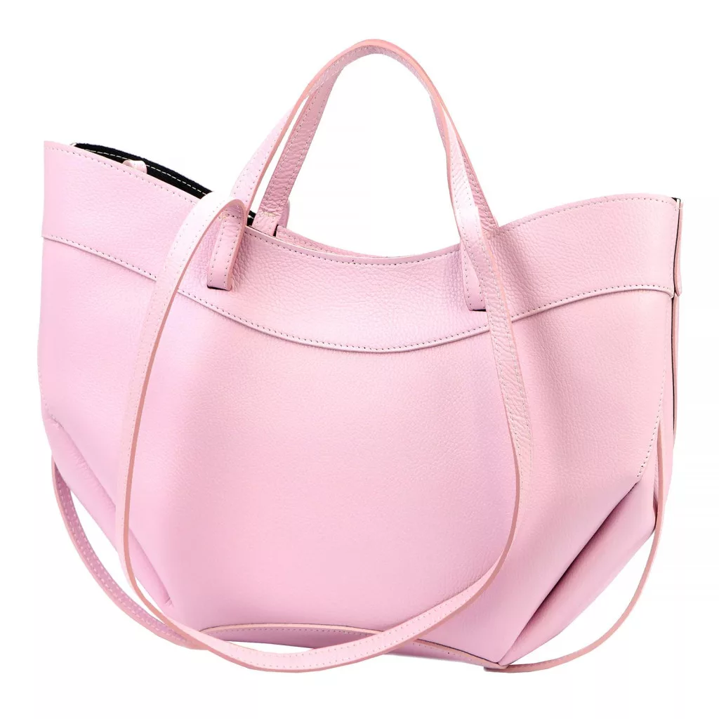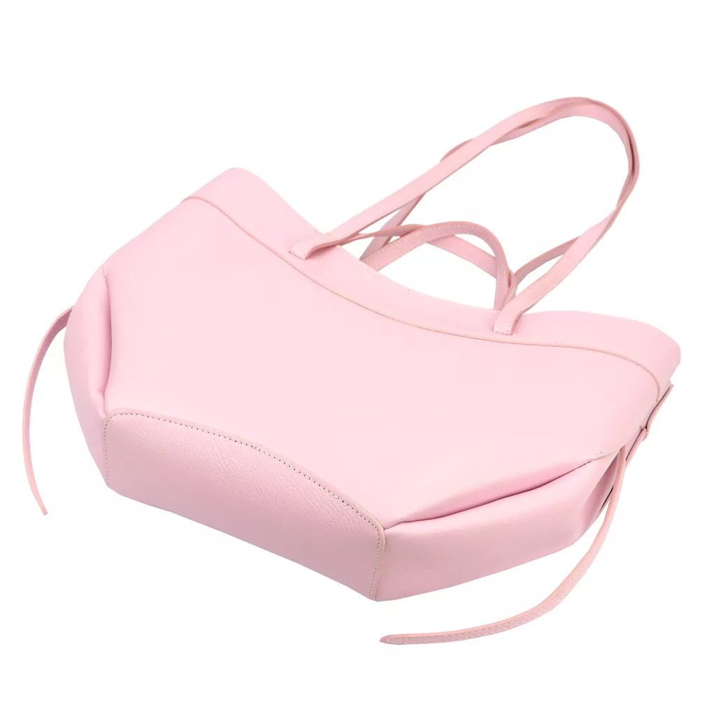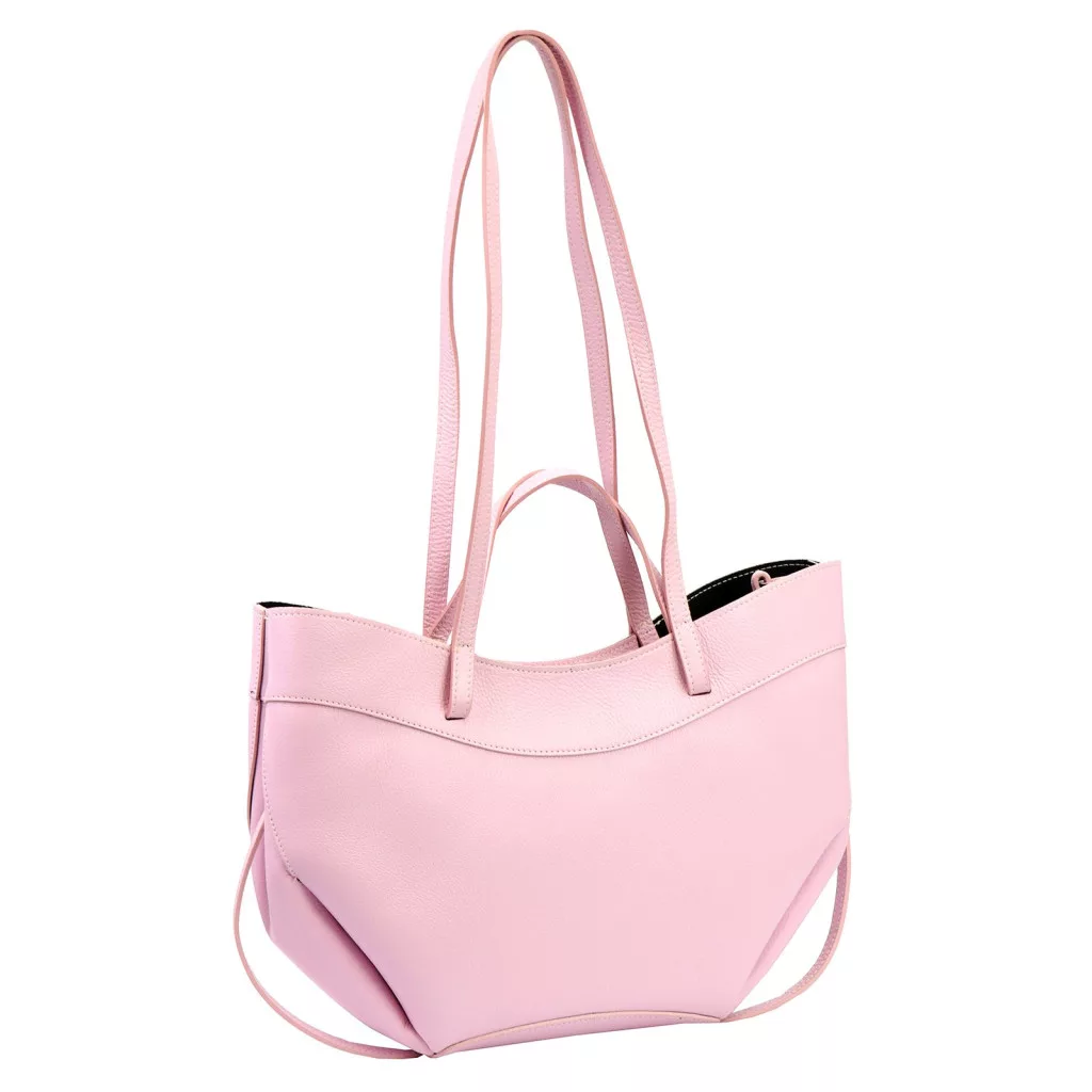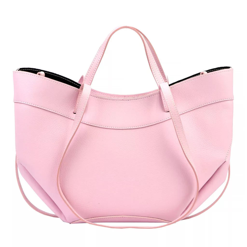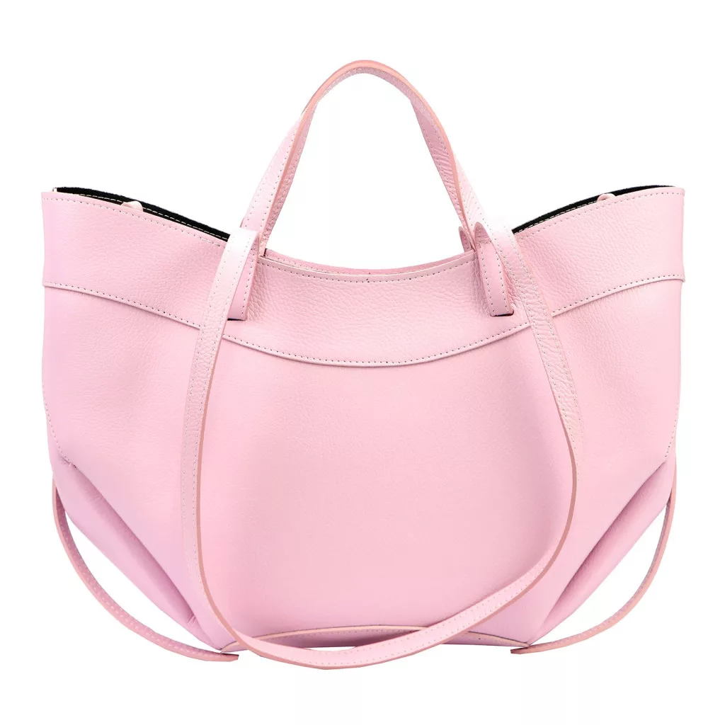 Modern, minimalista és nőies megjelenés. A táska különleges, enyhén ívelt és lágy vonalvezetésű fazonja elegáns sziluettet ad, miközben a finoman strukturált oldalak és a széles forma tágas belső teret biztosítanak. A rózsaszín árnyalat romantikus és divatos karaktert kölcsönöz ennek a modern városi kézitáskának, amely tökéletes választás a stílusos mindennapokhoz.