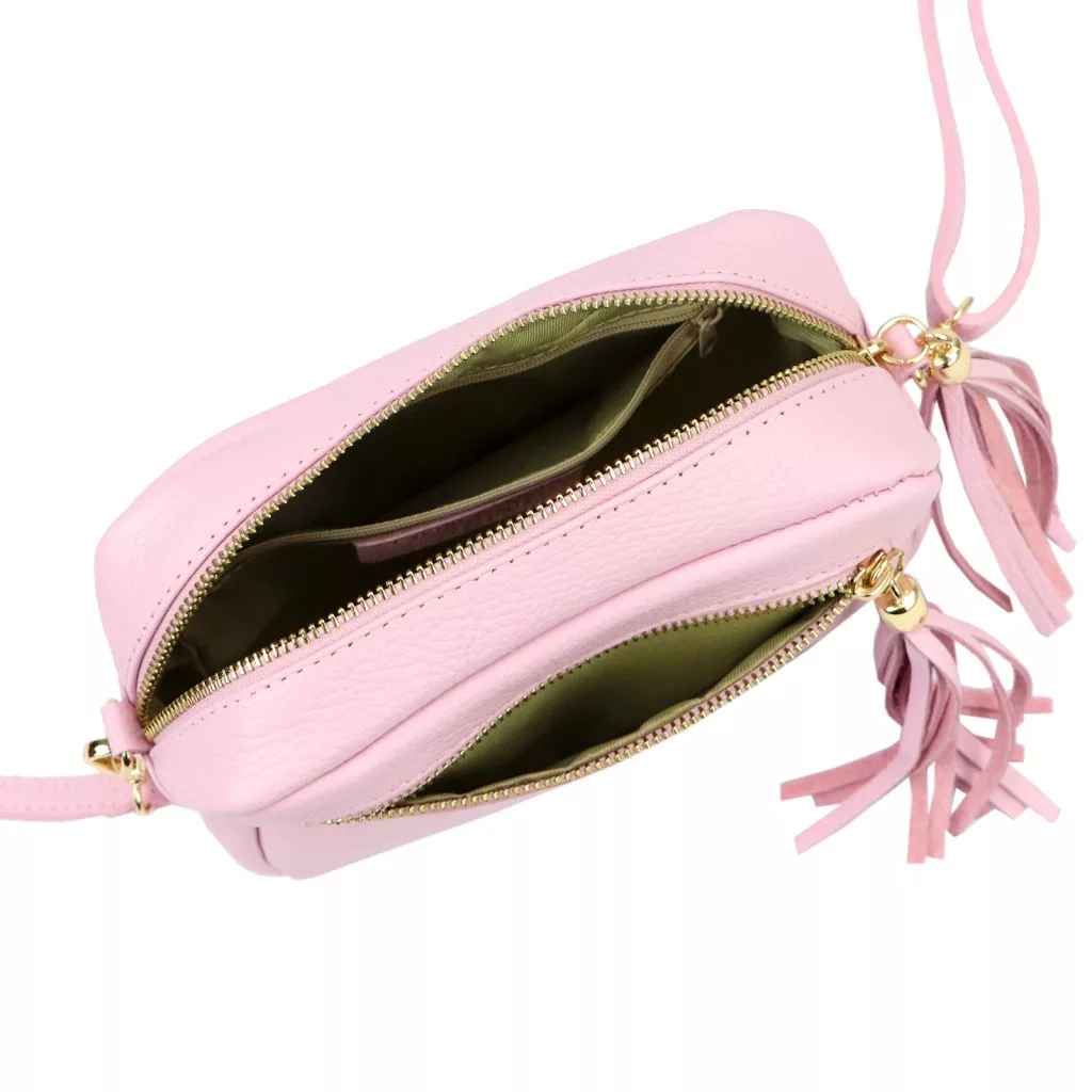 A táska prémium minőségű, valódi marhabőrből készült, amely tartósságot és kifinomult eleganciát garantál. A halvány rózsaszín szín a feng shui szerint a gyengédséget, a szeretetet és a harmóniát szimbolizálja, így finom, romantikus kiegészítője lehet bármely öltözéknek.