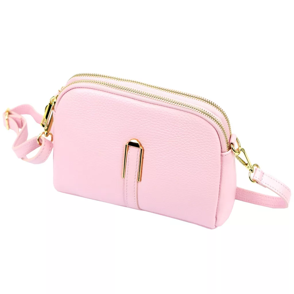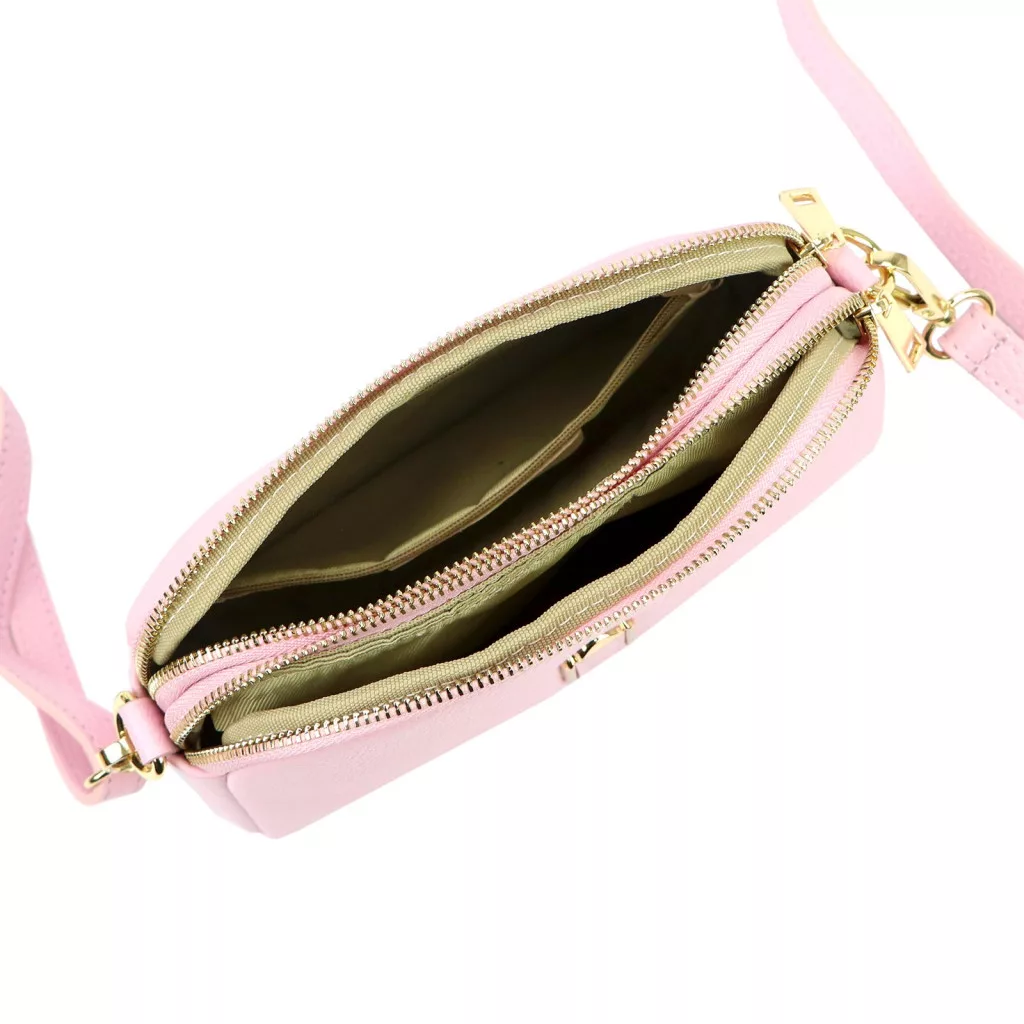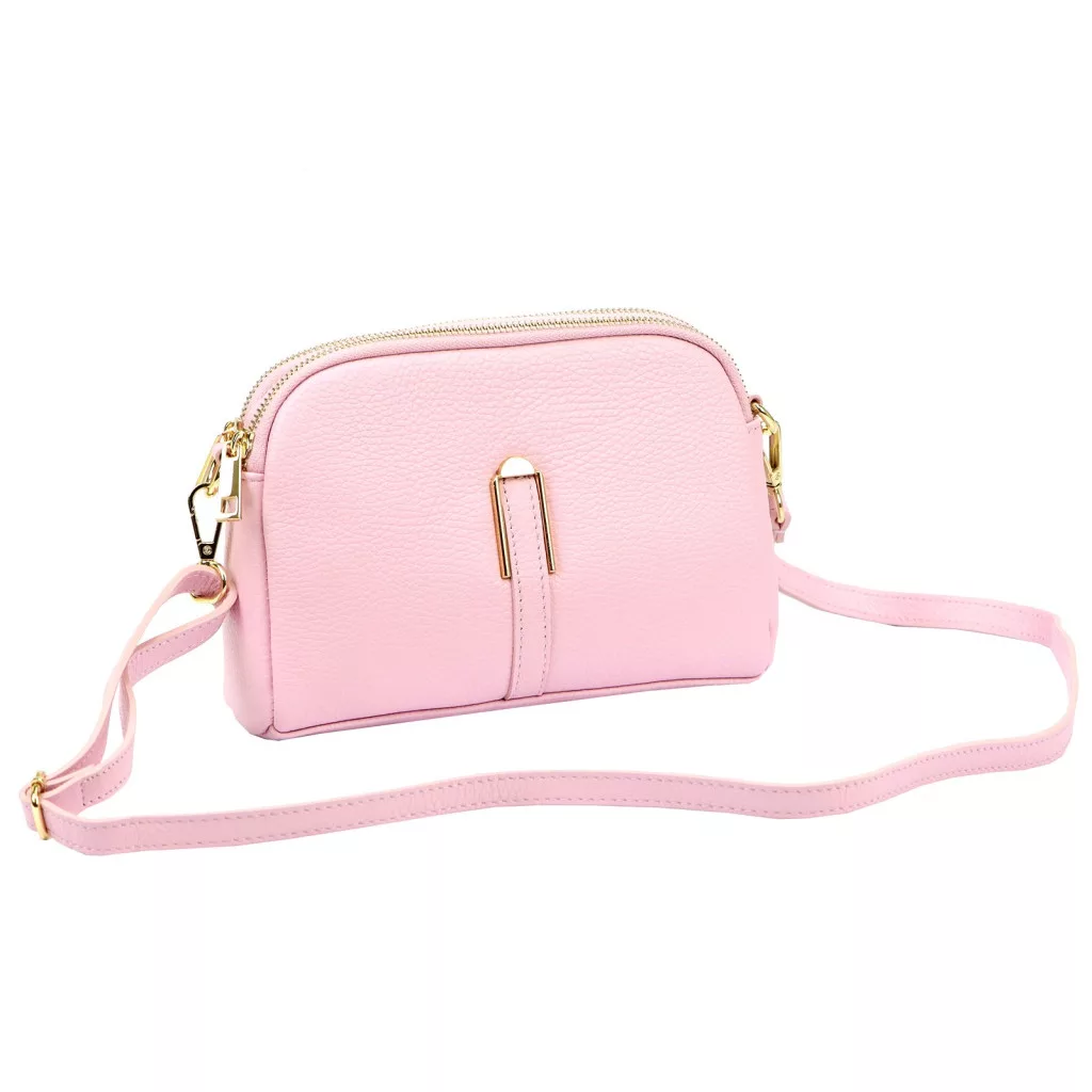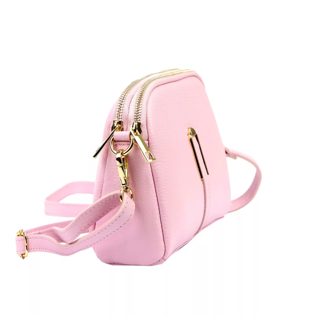 Nieduża torebka-listonoszka z naturalnej skóry licowej. Torebka ma budowę dwukomorową, wykończona została trwałą podszewką. Jedną komorę wyposażono w kieszonkę zapinaną na suwak, a drugą w kieszeń na telefon. Obie komory zamykane są zamkiem błyskawicznym. Długi pasek pozwala wygodnie nosić ją na ramieniu lub na ukos przez pierś.