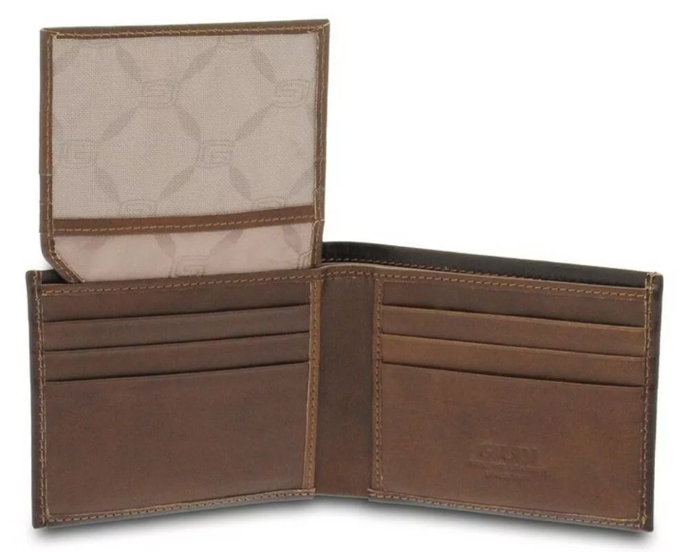 Giudi Newcastle tmavohnedý exteriér a hnedý interiér kombinovaná kožená peňaženka a aktovka pre mužov.