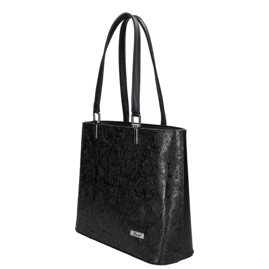 Karen Oliwia čierno-grafitová dámska vláknitá kožená kabelka, taška cez rameno