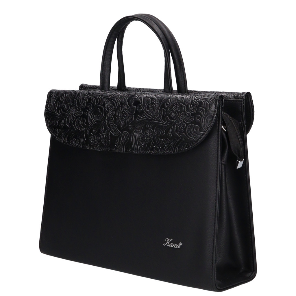 Karen Carla čierno-kvetinová dámska aktovka z vláknitej kože
