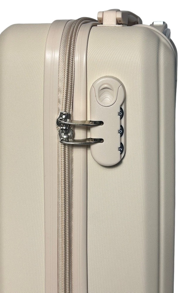 Veľkosť kufra vrátane koliesok je 45 cm, preto je vhodné ich pri meraní vytiahnuť. p>Pre bezpečnosť našich cenností sú tieto kufre vybavené číselným zámkom.