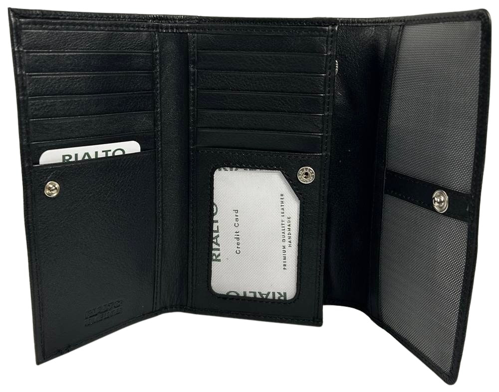 Väčšia dámska peňaženka vyrobená z kože, ktorá za svoju obľubu medzi dámami vďačí nielen svojmu jedinečnému vzhľadu, ale aj praktickému prevedeniu.