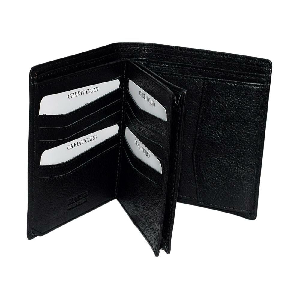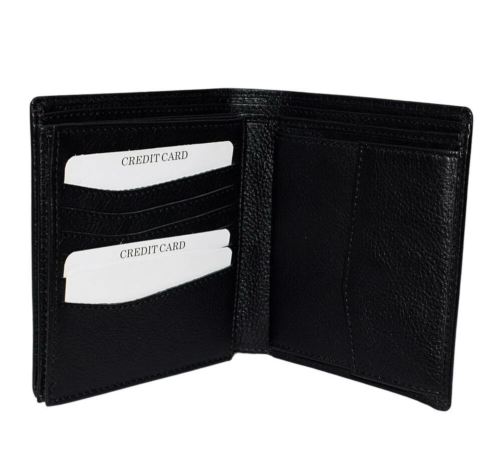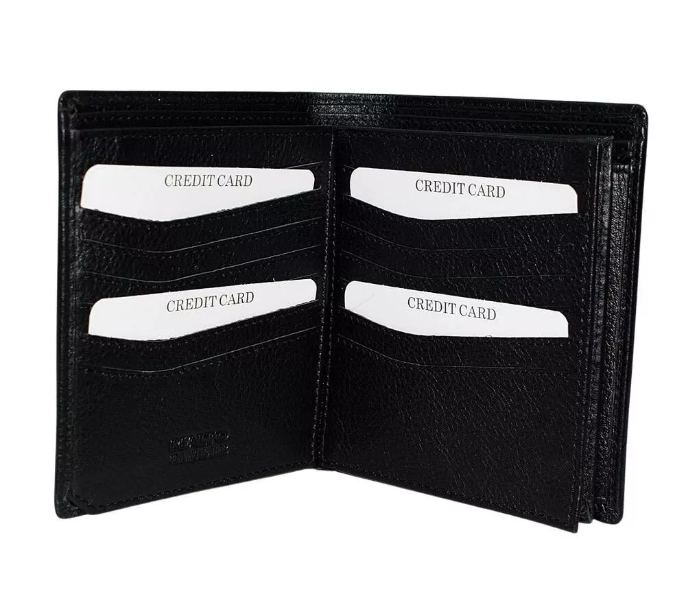 Čierna pánska kožená peňaženka Rialto so skrytým držiakom na karty, kufríkom, vyrobená z kvalitnej hovädzej kože.