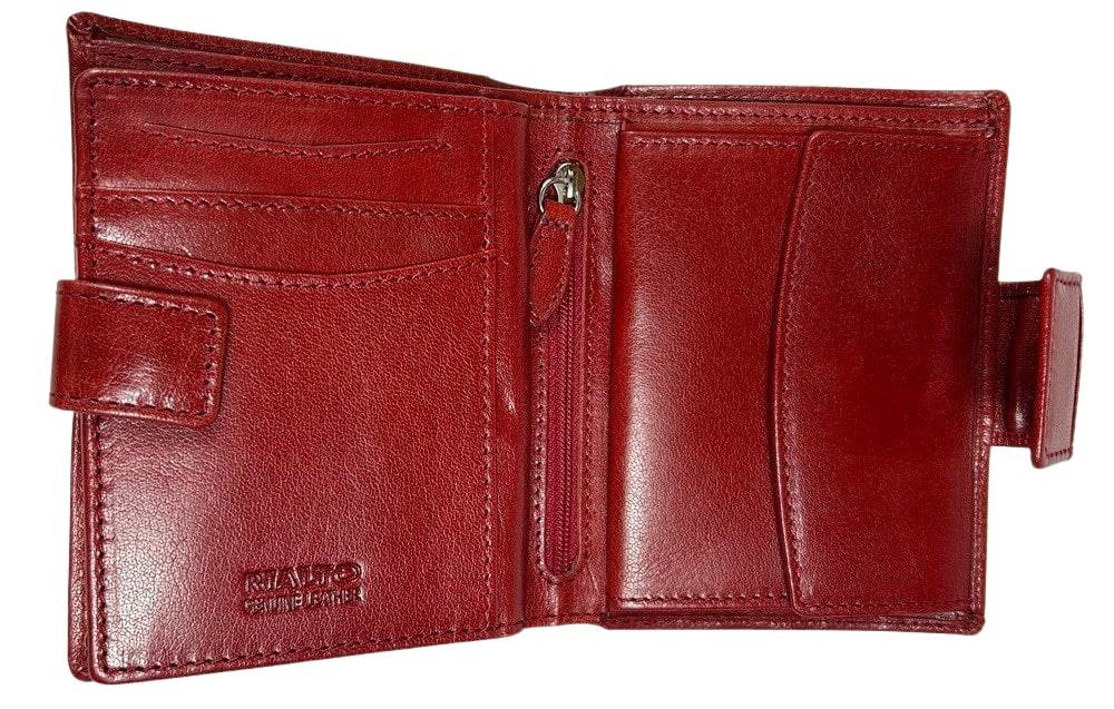 Červená kožená peňaženka Rialto s komplexným remienkom