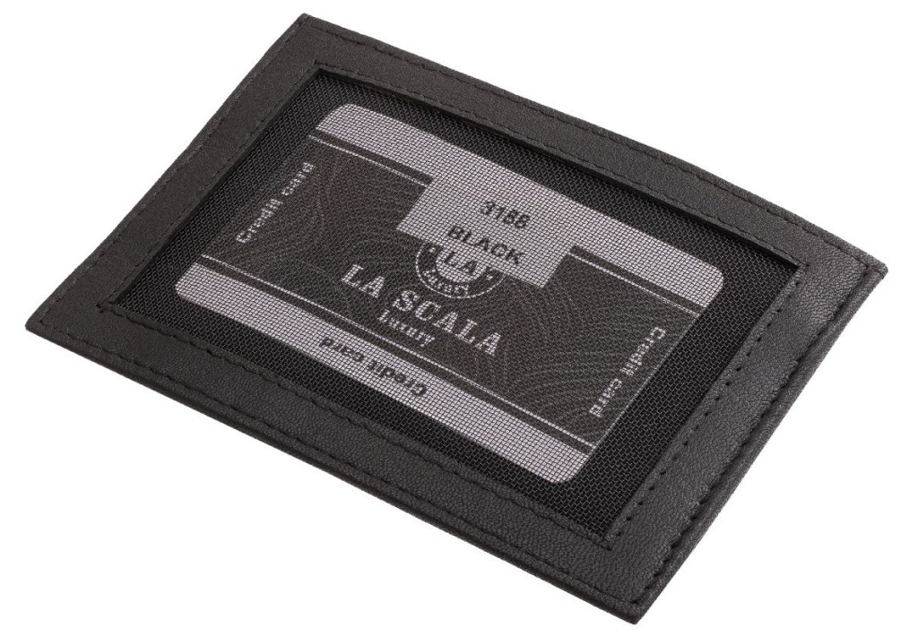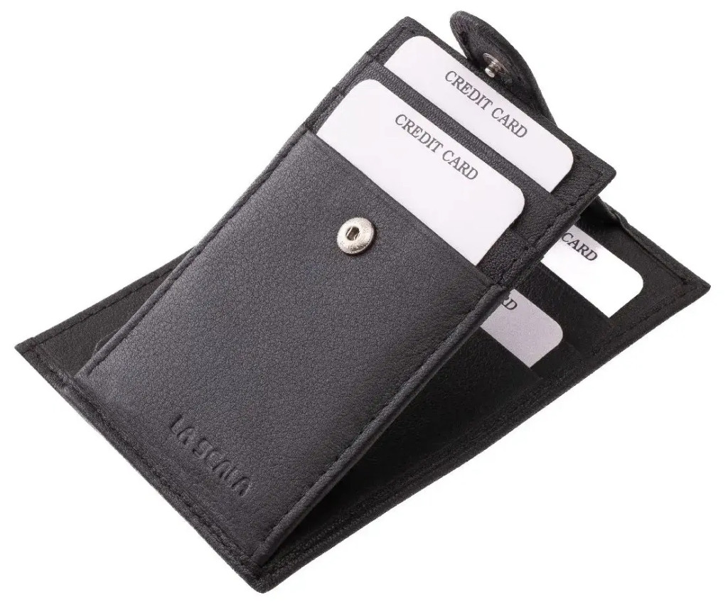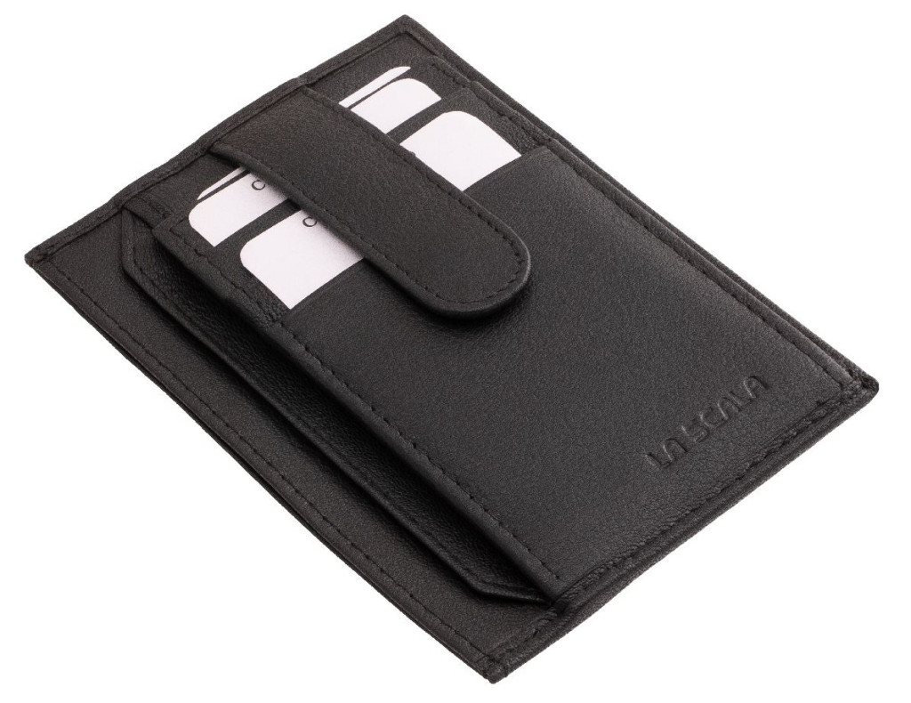 LA SCALA: čierny kožený držiak na karty 10,5 x 7,5 cm