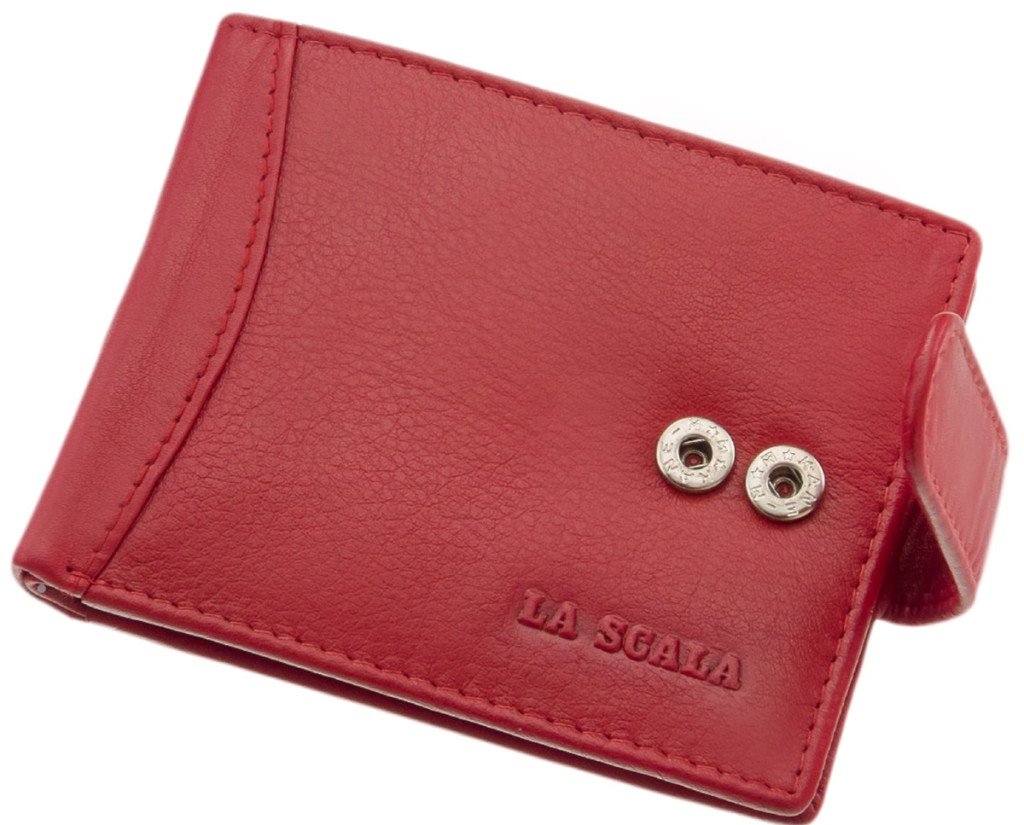 Držiak na karty s remienkom v čiernej farbe, vyrobený z pravej hovädzej kože, na veku vytlačený názov značky LA SCALA.