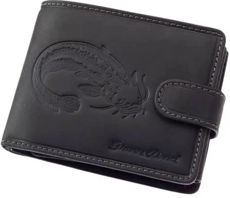 Rybárska kožená peňaženka GreenDeed so vzorom šťuky 12 x 9,5 cm