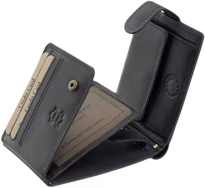 Táto kožená peňaženka je určená najmä kus určený pre rybárov, ktorý je vyrobený z tenkej hovädzej kože s efektom opotrebovania sťahovacieho typu.