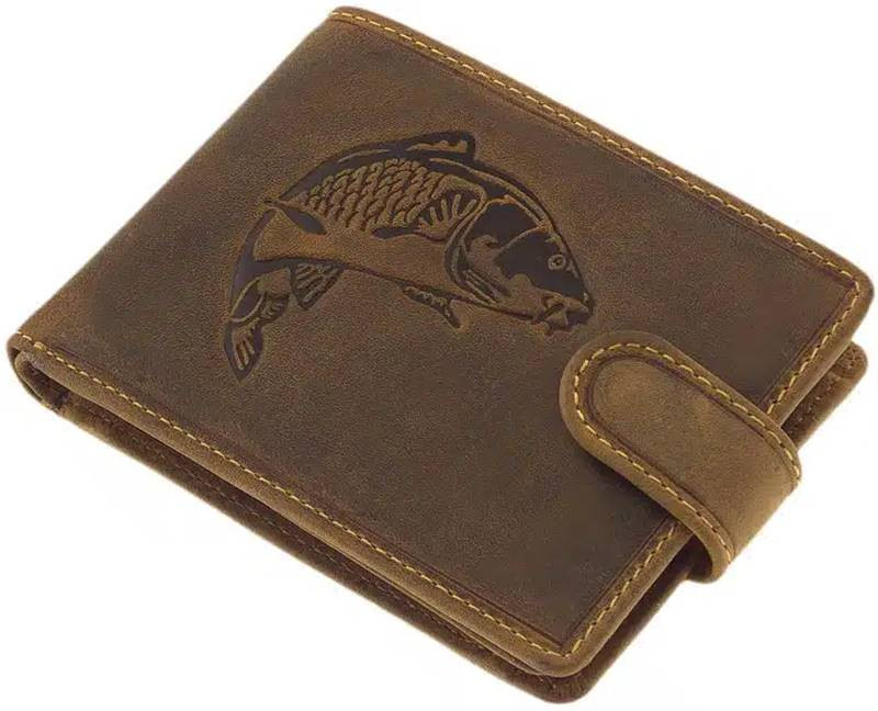 Kožená peňaženka s rybárskym klipom GreenDeed s potlačou kapra