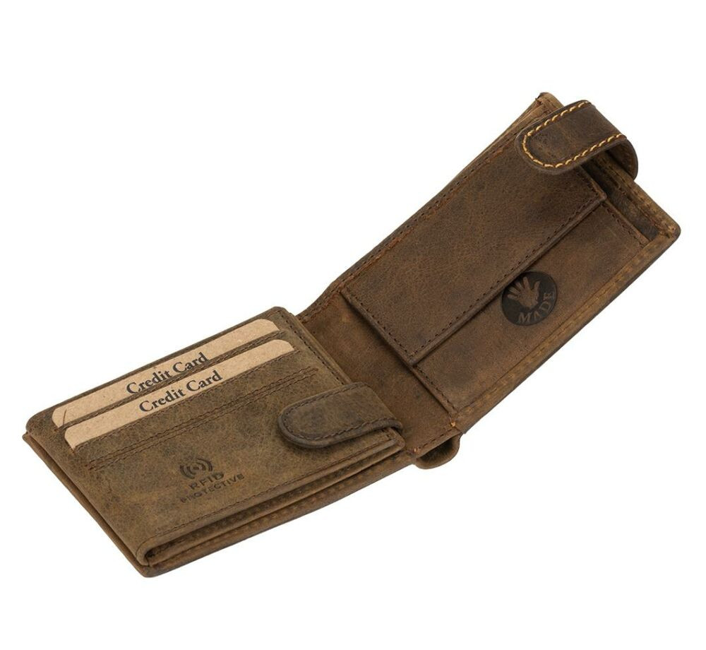 Táto kožená peňaženka je určená najmä kus určený pre rybárov vyrobený z tenkej hovädzej kože s efektom opotrebovania vintage typu.