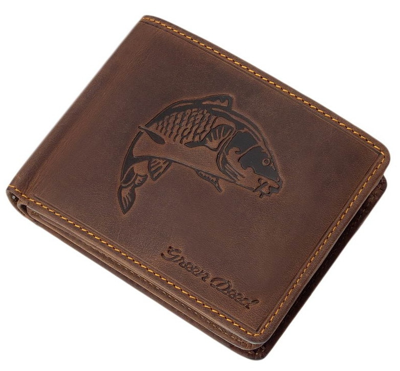 Rybárska kožená peňaženka GreenDeed s potlačou kapra, RFID ochrana