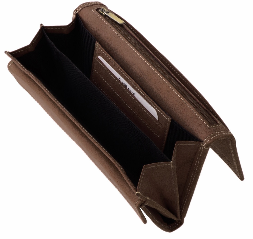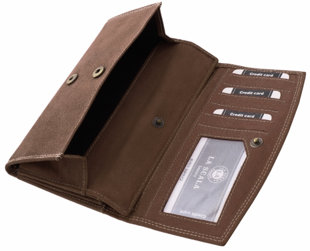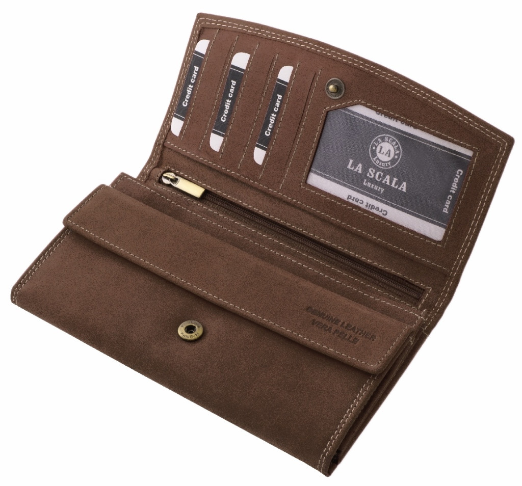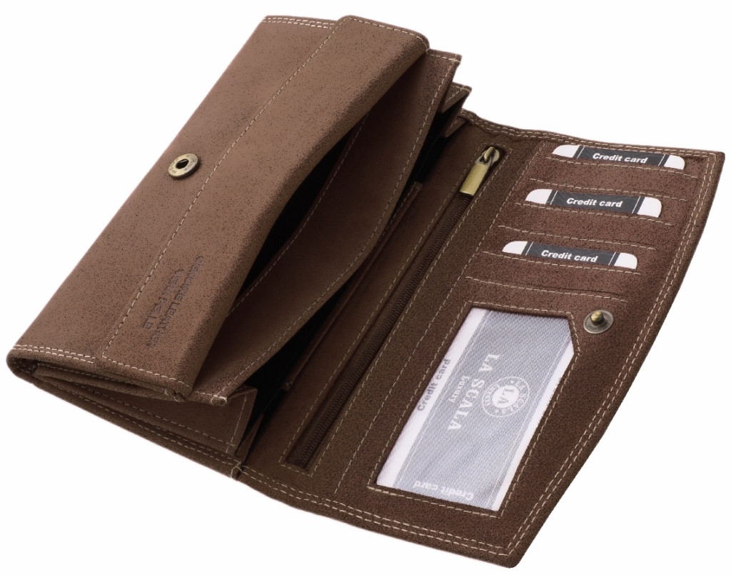 Táto peňaženka je vyrobená z pravej kože, kvalitného produktu. Veko je uzatvárateľné na zips, na prednej strane je vidieť vyrazené logo La Scala. Väčší model, takže jeho interiér je veľmi pohodlný a praktický na používanie.