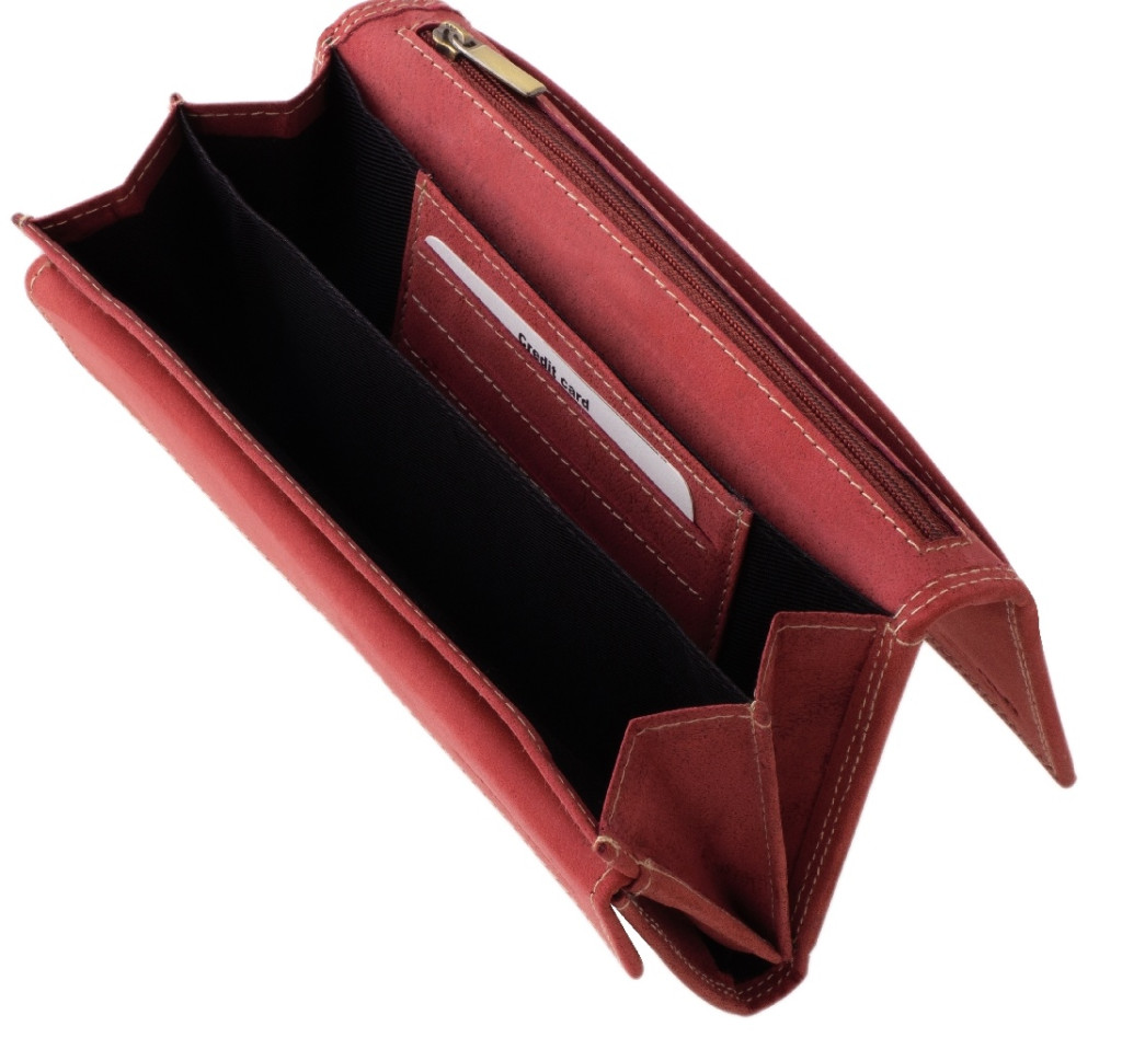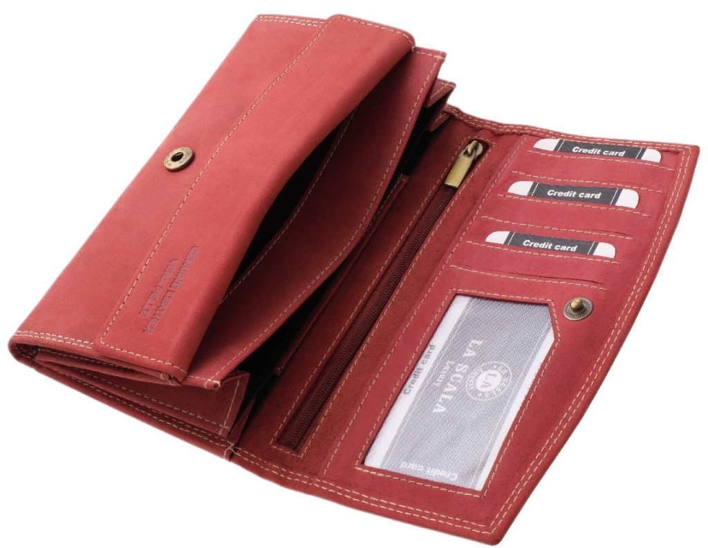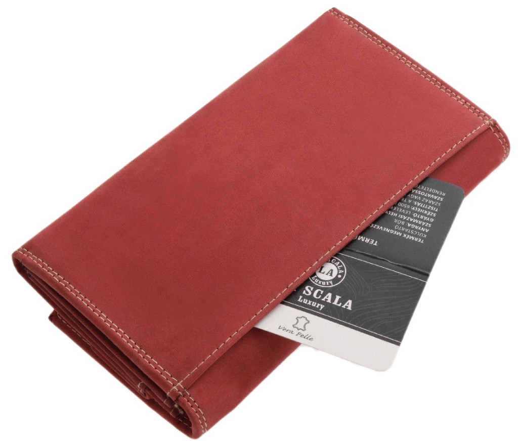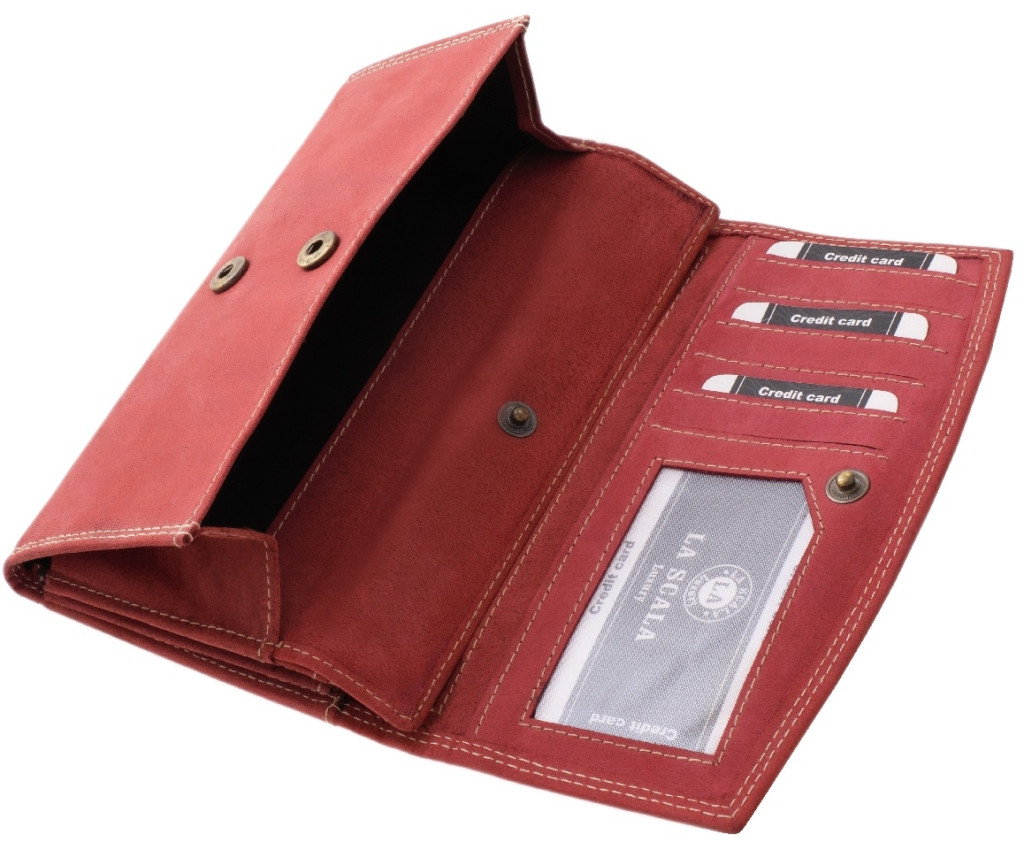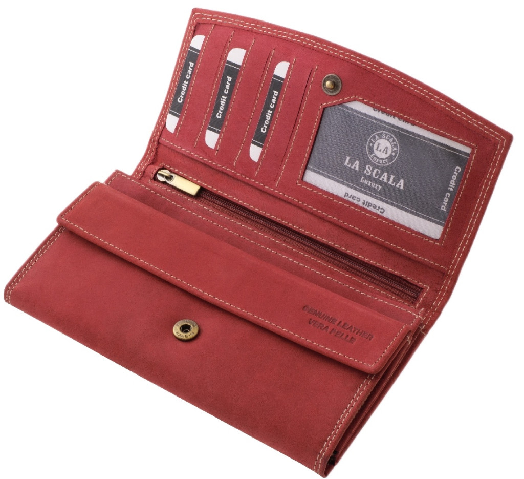 Červená veľká dámska kožená peňaženka La Scala