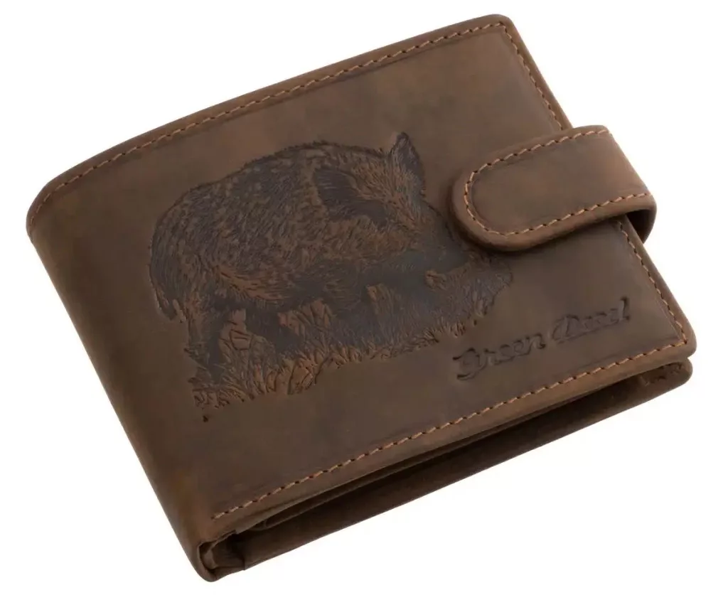 Peňaženka značky GreenDeed určená pre mužských rybárov, vyrobená z kvalitnej prírodnej hovädzej kože. Obal peňaženky sa vyznačuje špeciálnym dizajnom, detailnou kresbou sumca, ktorá je zvýraznená ozdobným prešívaním. Výrobok je možné uzavrieť praktickým vonkajším prepínacím pútkom. Peňaženka má dvojkomorový držiak na papierové peniaze, ktorý má aj ďalšie skryté vrecko na zips, malý držiak na drobné a niekoľko priehradiek na karty a doklady.