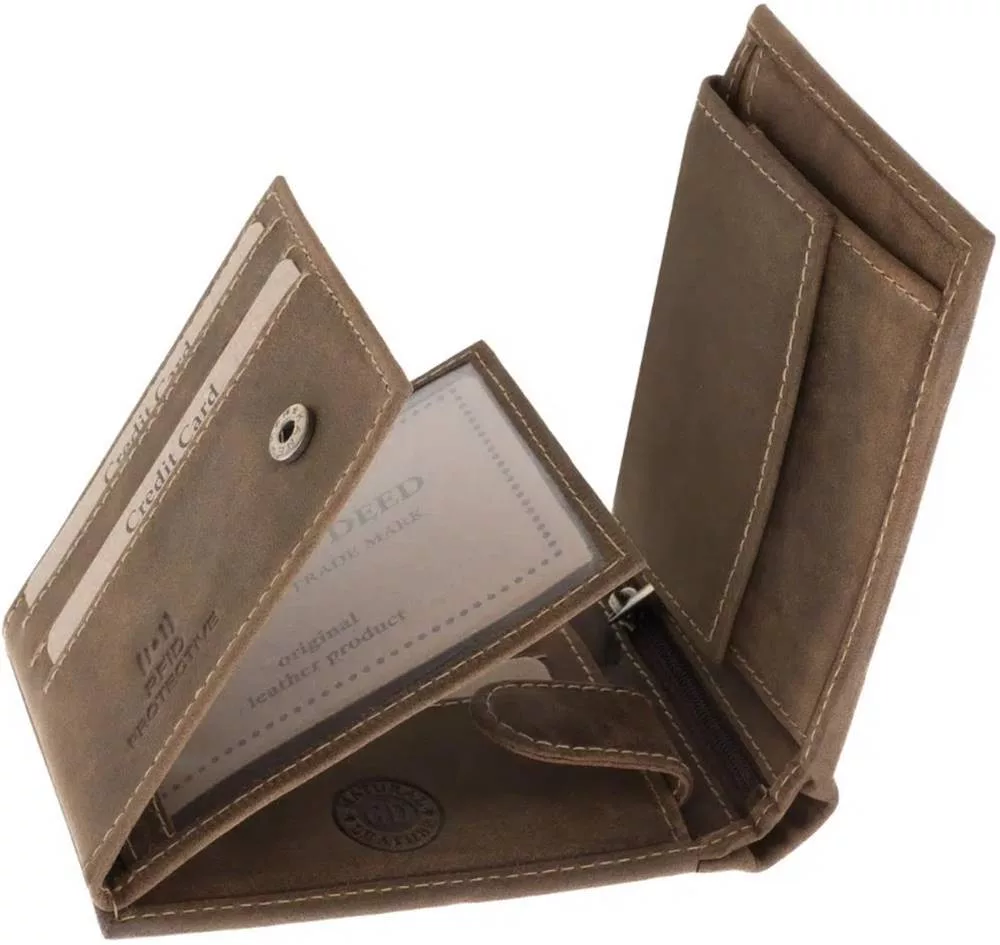 Peňaženka značky GreenDeed určená pre mužských rybárov, vyrobená z kvalitnej prírodnej hovädzej kože. Obal peňaženky sa vyznačuje špeciálnym dizajnom, detailnou kresbou sumca, ktorá je zvýraznená ozdobným prešívaním. Výrobok je možné uzavrieť praktickým vonkajším prepínacím pútkom. Peňaženka má dvojkomorový držiak na papierové peniaze, ktorý má aj ďalšie skryté vrecko na zips, malý držiak na drobné a niekoľko priehradiek na karty a doklady.