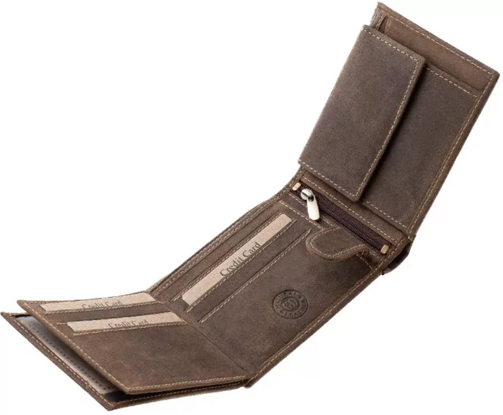 Peňaženka značky GreenDeed určená pre mužských rybárov, vyrobená z kvalitnej prírodnej hovädzej kože. Obal peňaženky sa vyznačuje špeciálnym dizajnom, detailnou kresbou sumca, ktorá je zvýraznená ozdobným prešívaním. Výrobok je možné uzavrieť praktickým vonkajším prepínacím pútkom. Peňaženka má dvojkomorový držiak na papierové peniaze, ktorý má aj ďalšie skryté vrecko na zips, malý držiak na drobné a niekoľko priehradiek na karty a doklady.