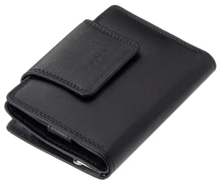 Kvalitná, príjemná na dotyk, odolná dámska peňaženka z mäkkej kože v tyrkysovej farbe, s nápisom La Scala na vrchnáku.