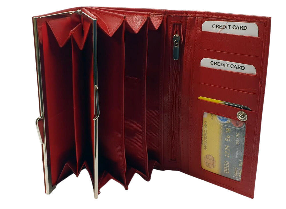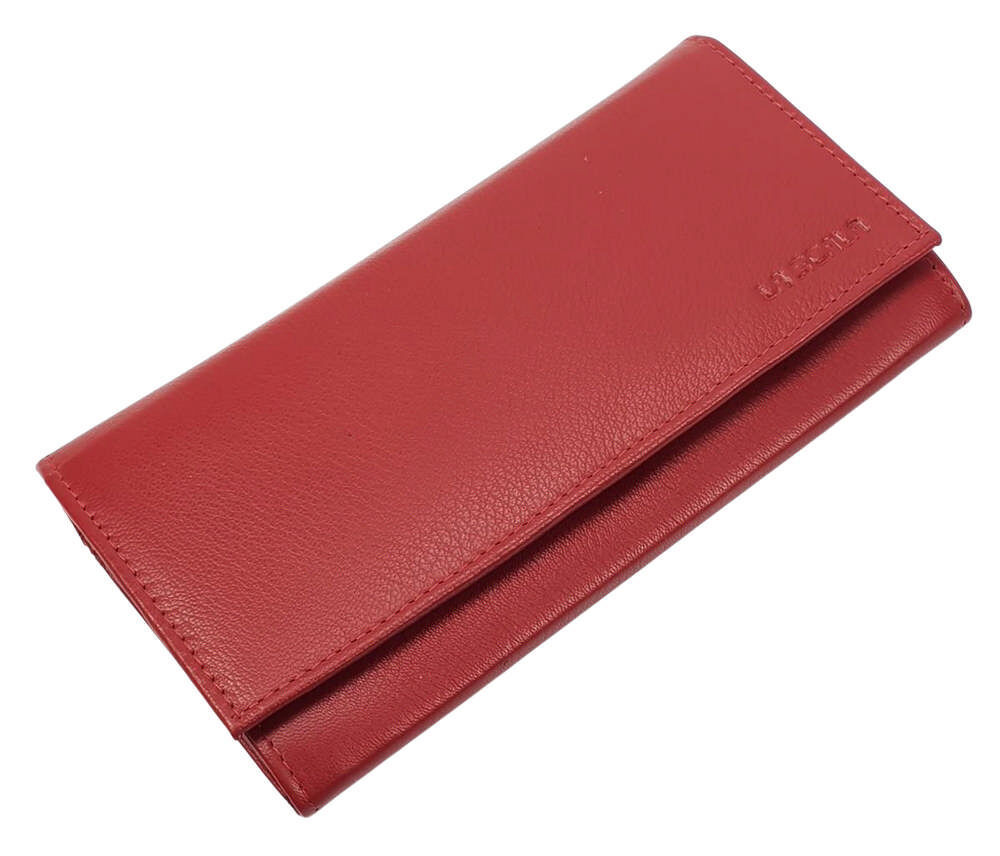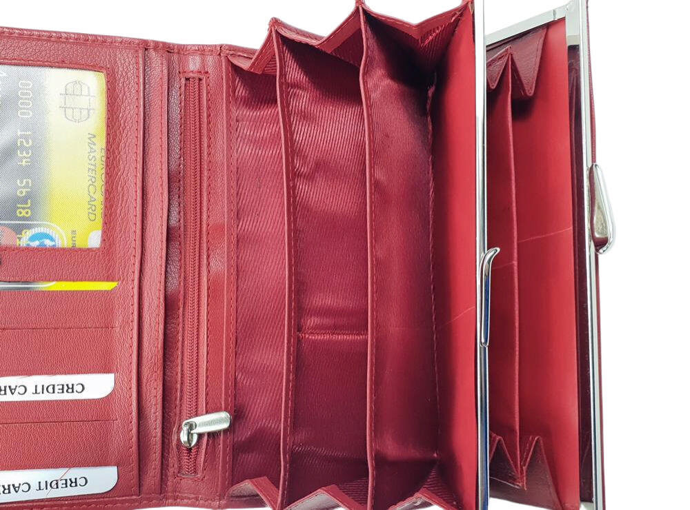 Peňaženka červenej farby s logom La Scala na veku. Vo vnútri sú tri vrecká na papierové peniaze a dvojdielny držiak na drobné s rámom, ako aj držiaky na karty a doklady. Na zadnej strane peňaženky bola navrhnutá ďalšia otvorená priehradka na doklady.