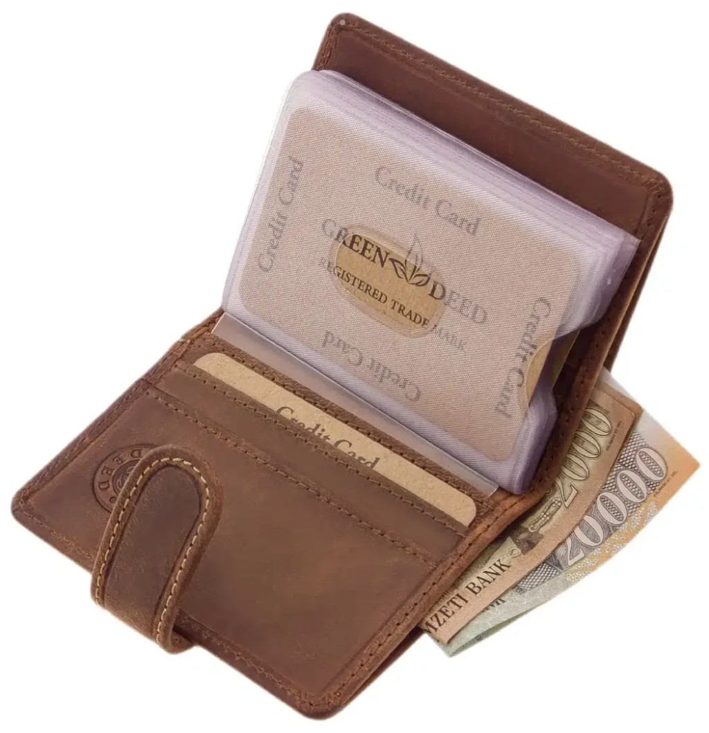 Tento komplexný hnedý kožený držiak na karty GreenDeed je medzi zákazníkmi veľmi obľúbeným produktom, pretože je jednoduchý a čistý na pohľad, veľkosť a dizajn sú veľmi praktické, keďže má aj priehradku na papierové peniaze.