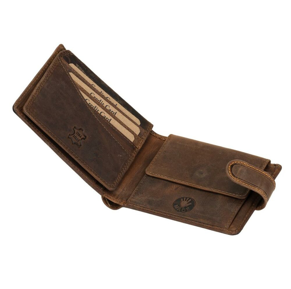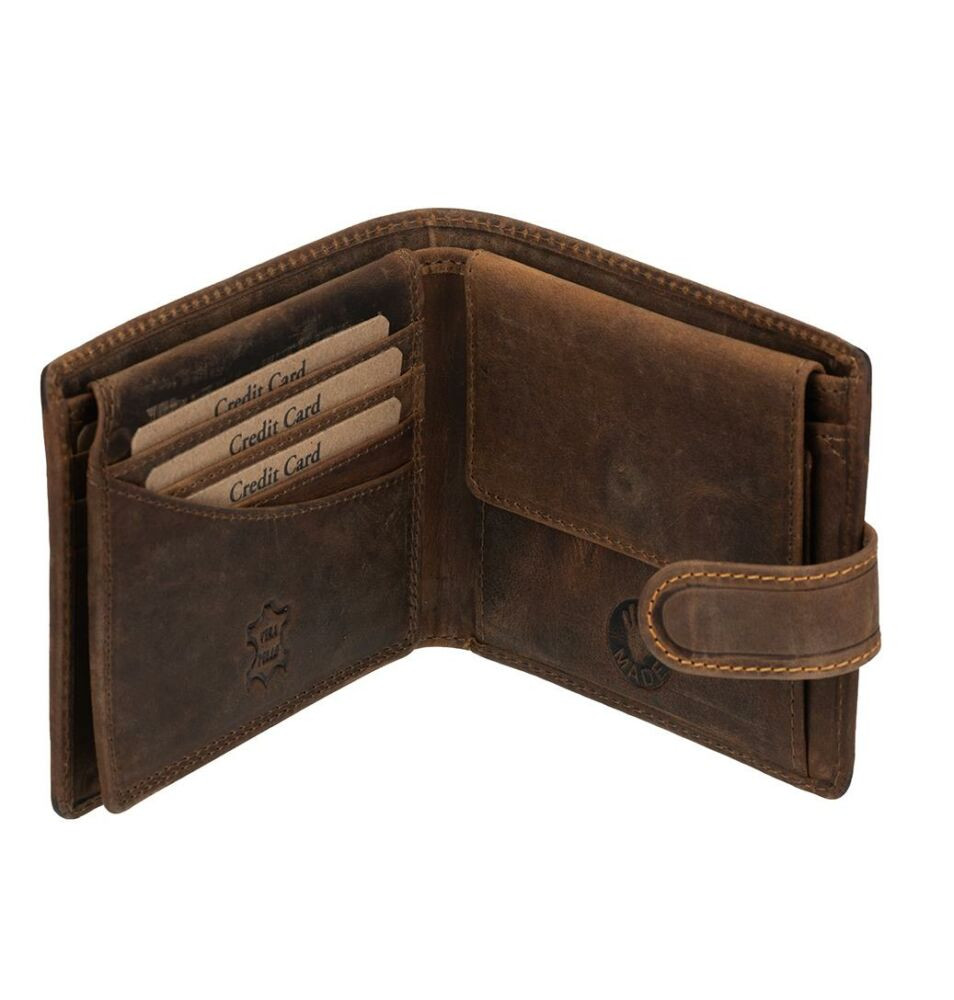 Táto kožená peňaženka je vyrobená z tenkej hovädzej kože s efektom vyťahovania.