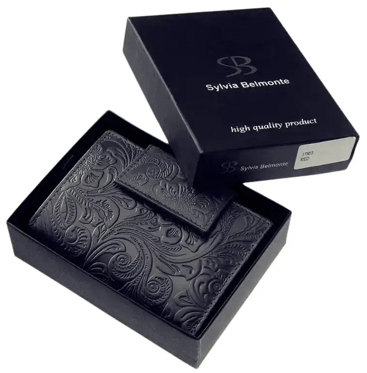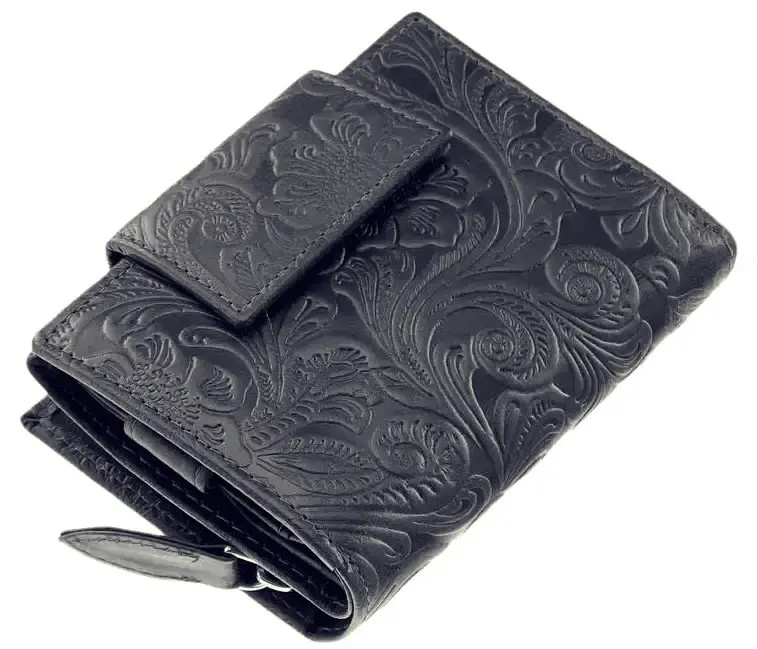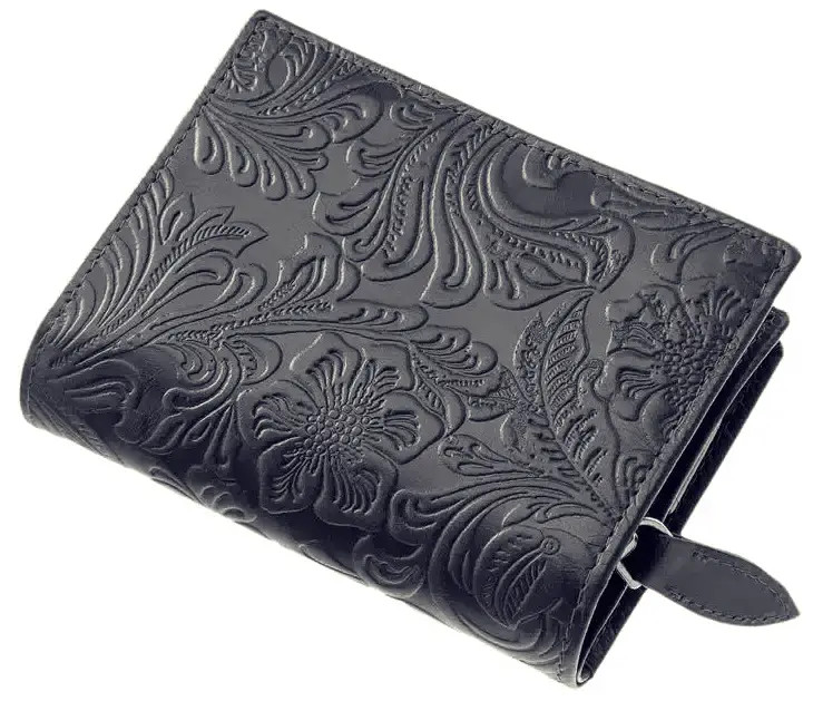 Sylvia Belmonte: modrá dámska kožená peňaženka s lisovanou sponou 12,4 x 9,5 cm