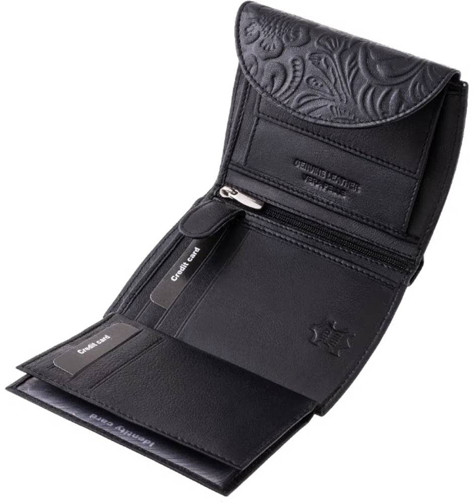 • Vo vnútornej polovici peňaženky v blízkosti držiakov na karty je umiestnené väčšie vrecko na zips, ktoré umožňuje jednoduché uloženie našich menších cenností