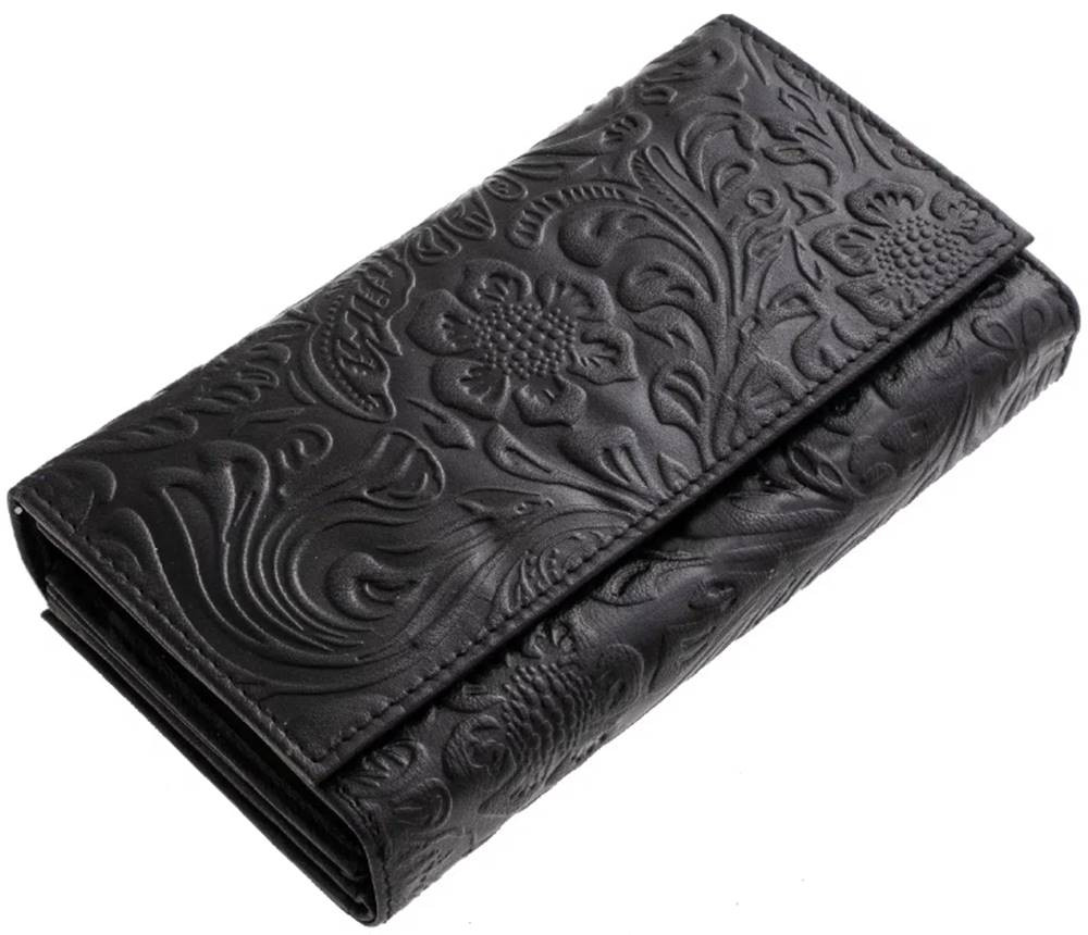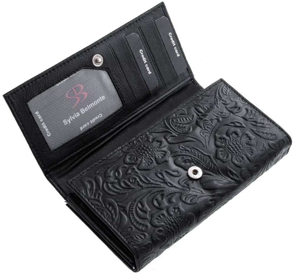 Sylvia Belmonte kvetinový vzor, modrá dámska kožená peňaženka 17,7 x 10 cm