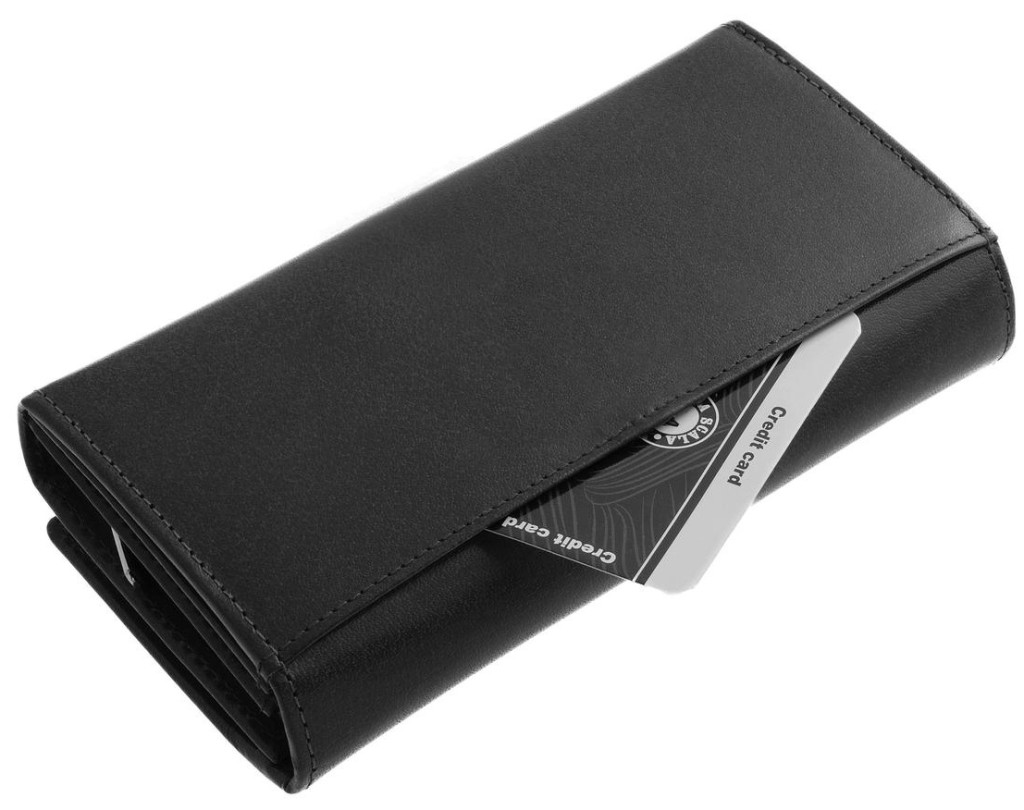Obálka produktu je zatvorená s patentom. Peňaženka má niekoľko držiakov na karty a doklady, tri držiaky na papierové peniaze a dva držiaky na drobné.