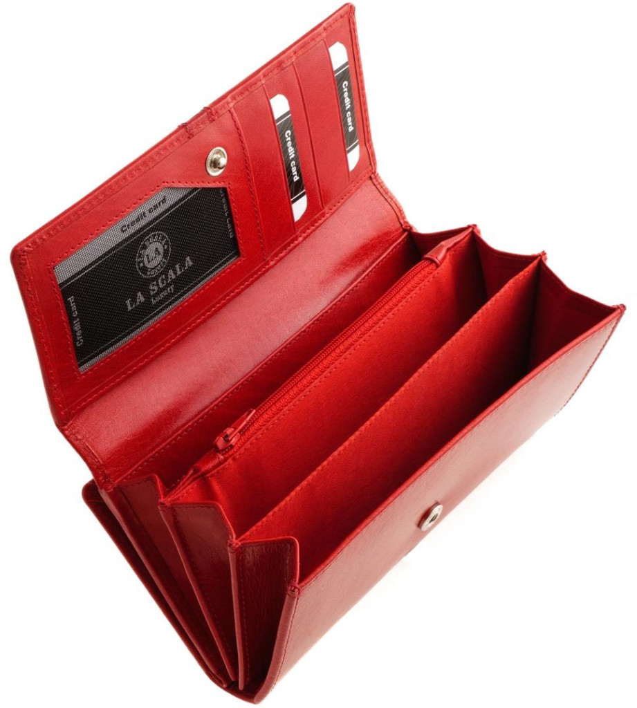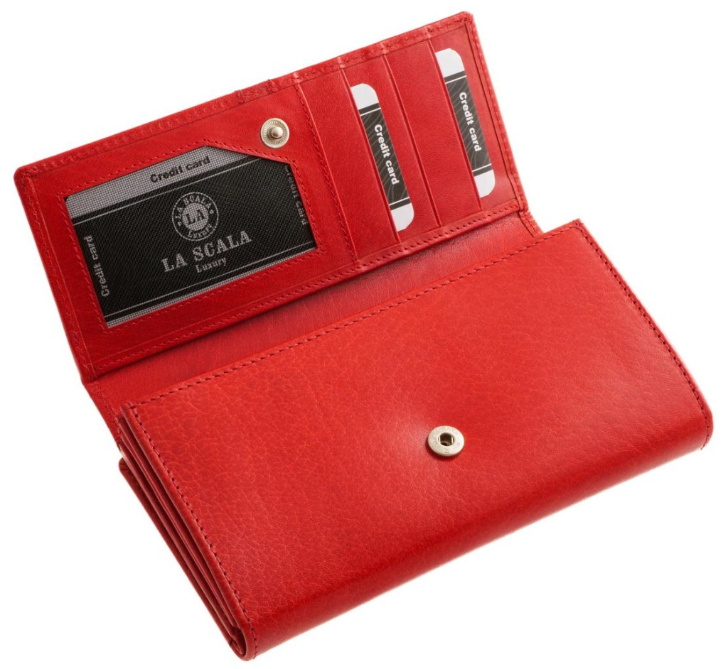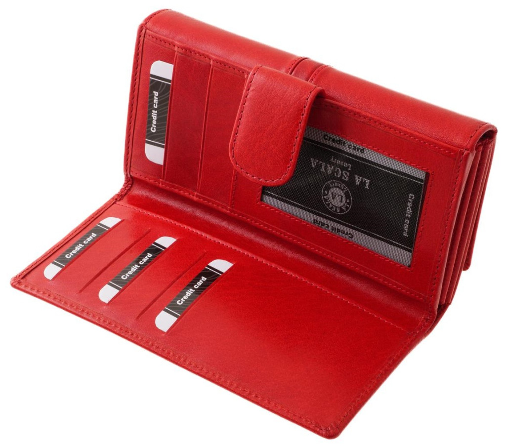 Obálka produktu je zatvorená s patentom. Peňaženka má niekoľko držiakov na karty a doklady, tri držiaky na papierové peniaze a dva držiaky na drobné.
