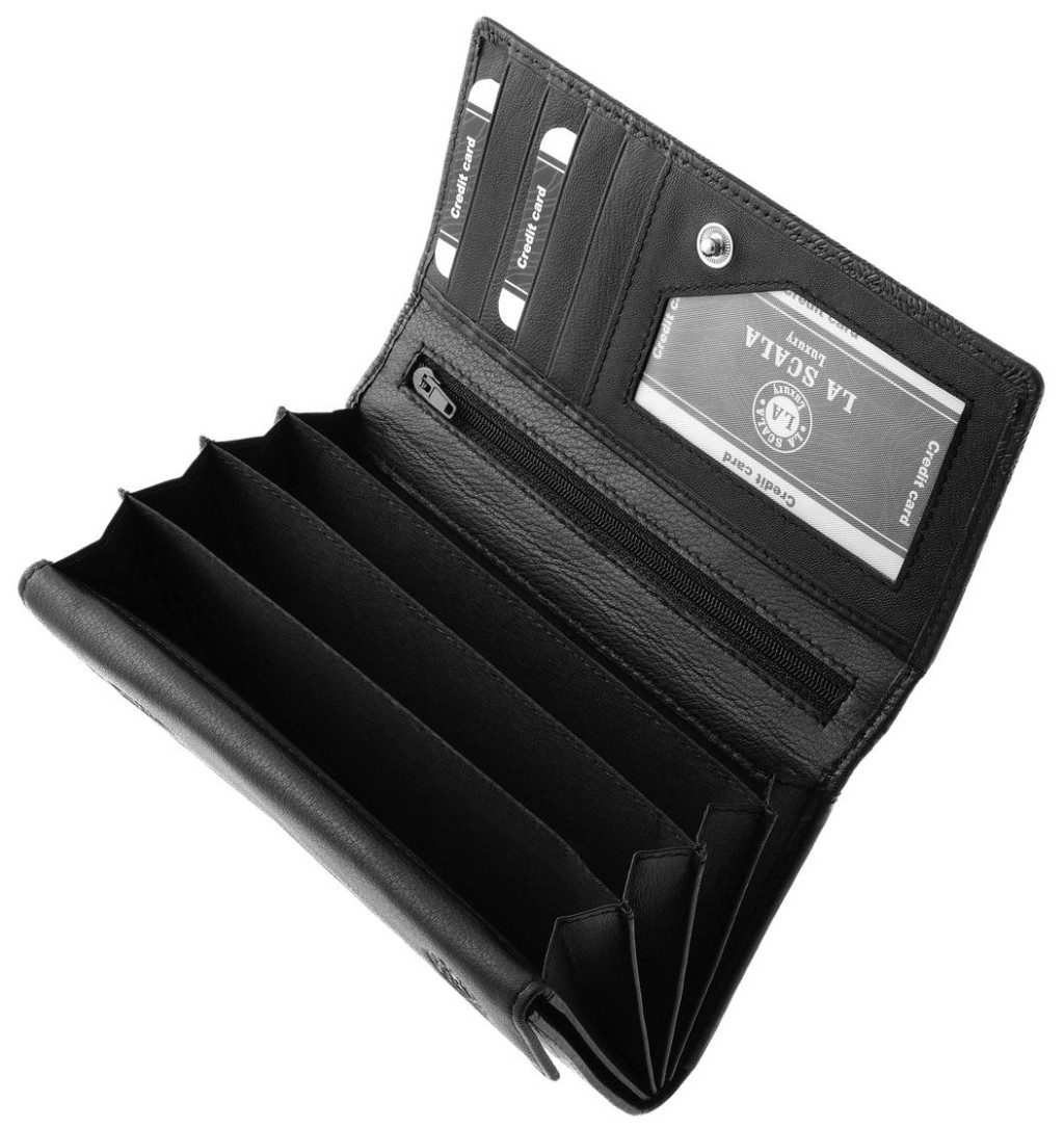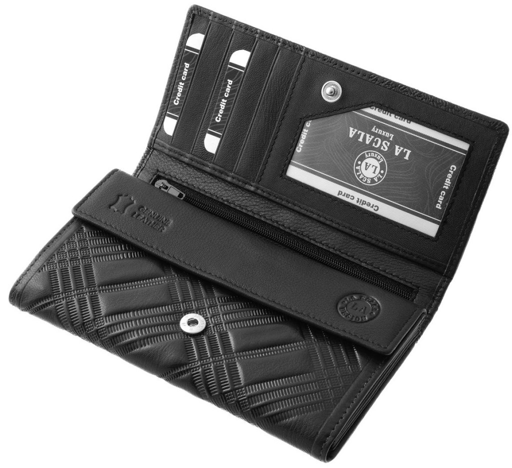 Vysoko kvalitná, príjemná na dotyk, odolná mäkká kožená veľká dámska peňaženka horčicovožltej farby, s reliéfom La Scala na vrchnáku. Vďaka svojej veľkosti a praktickému prevedeniu je medzi dámami veľmi obľúbený, a tak môže byť perfektnou voľbou nielen pre vás, ale aj ako darček.