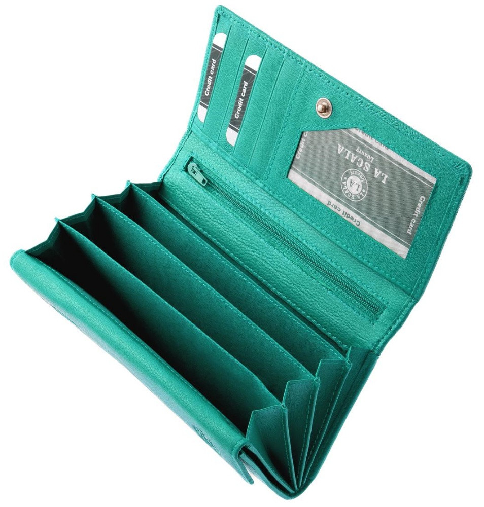 Vysoko kvalitná, príjemná na dotyk, odolná mäkká kožená veľká dámska peňaženka horčicovožltej farby, s reliéfom La Scala na vrchnáku. Vďaka svojej veľkosti a praktickému prevedeniu je medzi dámami veľmi obľúbený, a tak môže byť perfektnou voľbou nielen pre vás, ale aj ako darček.